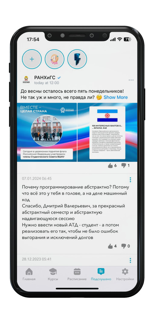 Приложение скачали 900 тысяч человек, активных пользователей, которые видят информацию от компаний и вузов — 200 тысяч. Это студенты от 1 курса бакалавра до аспирантов. С нами студенты проходят путь от поступления в вуз до выпуска и даже после выпуска остаются в приложении, смотрят курсы и т.д.. К концу 2024 года, по нашим подсчетам, число активных пользователей достигнет 500 тысяч.