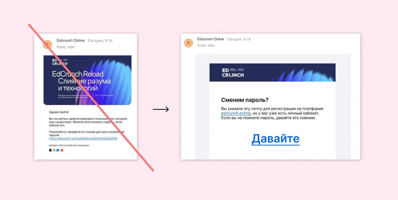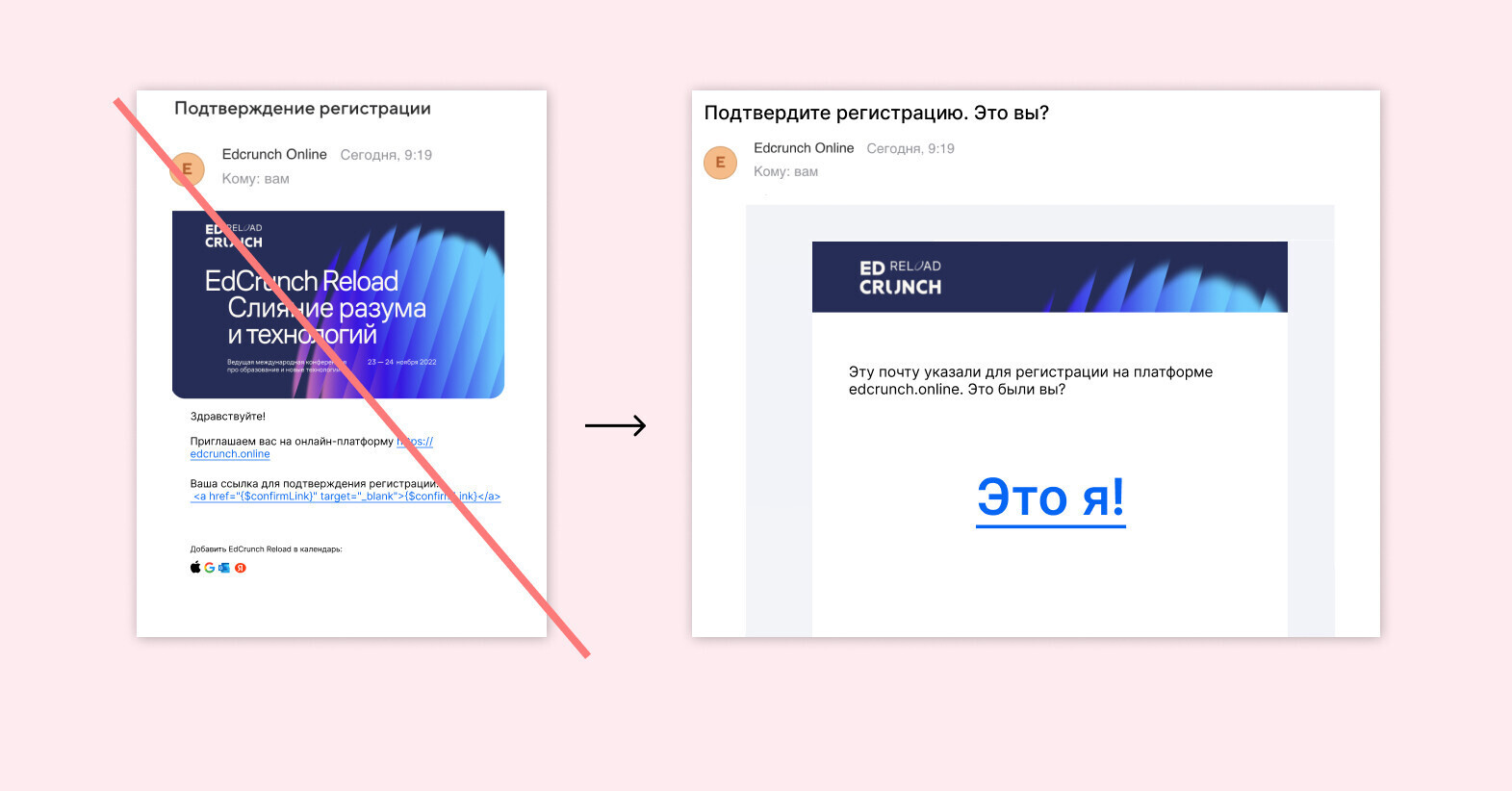 Полезное действие письма — это то, ради чего оно существует. Например, подтвердить регистрацию. Когда вы определились с полезным действием, максимизируйте его, насколько сможете: