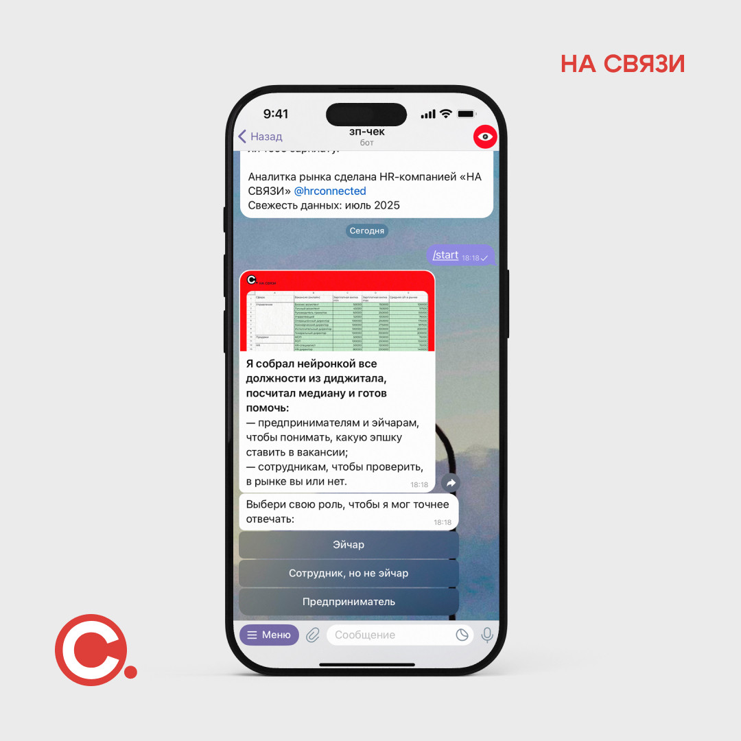 Если должности в базе нет, бот отвечает так: Если похожая должность есть в базе, но нужно уточнение, бот запрашивает его у пользователя: Бот — бесплатный, а пользователь не ограничивается в запросах. Он может хоть весь день пытать бота всеми должностями, которые придут ему на ум. Главное и единственное условие работы бота — подписка на телеграм-канал HR-компании «НА СВЯЗИ». Когда человек стартует бота и пишет интересующую его должность, бот проверяет, подписан ли тот на телеграм-канал. Если да — сразу выдаёт ответ, если нет — просит подписаться. Эйчары компании «НА СВЯЗИ» собрали все зарплаты по диджитал-должностям из вакансий на Хэдхантере, вывели медиану и объединили все эти данные в таблице. Мы интегрировали ChatGPT в бота и загрузили в него таблицу, чтобы ИИ сам оперативно анализировал базу данных и выдавал боту нужный результат. Функция диктовки должности голосом сделала бота удобнее для занятых пользователей. ИИ распознаёт голосовые и выдаёт ответ так же точно, как делает это с письменными запросами. Подготовили бота к рекламе. В описании подробно расписали, что умеет этот бот и кому он будет полезен, чтобы человек, который перейдёт в него из любопытства, точно нажал на старт. И оставили ссылку на телеграм-канал компании клиента. Так каждый пользователь будет понимать, кто его создал. А ещё упоминание компании поднимает доверие к боту и увеличивает трафик. Сделали посевы в телеграм-каналах со смежной аудиторией. Здесь следовали привычному алгоритму: Проверка телеграм-каналов на качество помогает отмести каналы, в которых подписчиков много, но большая часть из них накручена, а те крупицы живых людей, что подписаны на этот канал сами — не новлеченные. В таких каналах на рекламные ссылки тыкать некому :( Бот ориентировался на широкую аудиторию: предприниматели, эйчары и другие сотрудники. Чтобы отделить одних от других, мы пошли на хитрость. После запуска, бот спрашивает у человека его роль, обосновывая тем, что так результаты будут точнее. Так мы нашли предпринимателей, которым можно продавать услуги клиента. И отправляли им точечные рекламные предложения. Сообщение с рекламой предприниматель получает через минуту бездействия в боте. Если он отправляет свой номер телефона, то попадает в воронку продаж компании. Механика «подпишись на канал, чтобы получить результат» отлично работает, если пользователю любопытно узнать ответ на свой запрос. Когда он переходит в канал и подписывается, то видит, что там есть интересные для него посты. И не отписывается даже после того, как получил ответ от бота. Интерес к каналу сохраняется за счёт рекламы в релевантных тг-каналах: в «зп-чек» попадали не случайные люди, а те, кто потенциально относится к целевой аудитории HR-компании. После рекламных посевов заметили, что люди заходят в бота напрямую без UTM-меток. Это значит, что бот стал виральным — пользователи начали делиться им со своими знакомыми, поэтому часть подписчиков пришла в канал бесплатно. Почему полезный бот эффективнее прямой рекламы канала компании. Человек идёт за пользой. К рекламе телеграм-каналов все привыкли и видят её издалека, такая работает, но обходится компаниям дороже. А бот, который предлагает пользу, да ещё и даёт информацию про деньги, цепляет сильнее. Он вызывает любопытство, которое заставляет человека нажать на кн