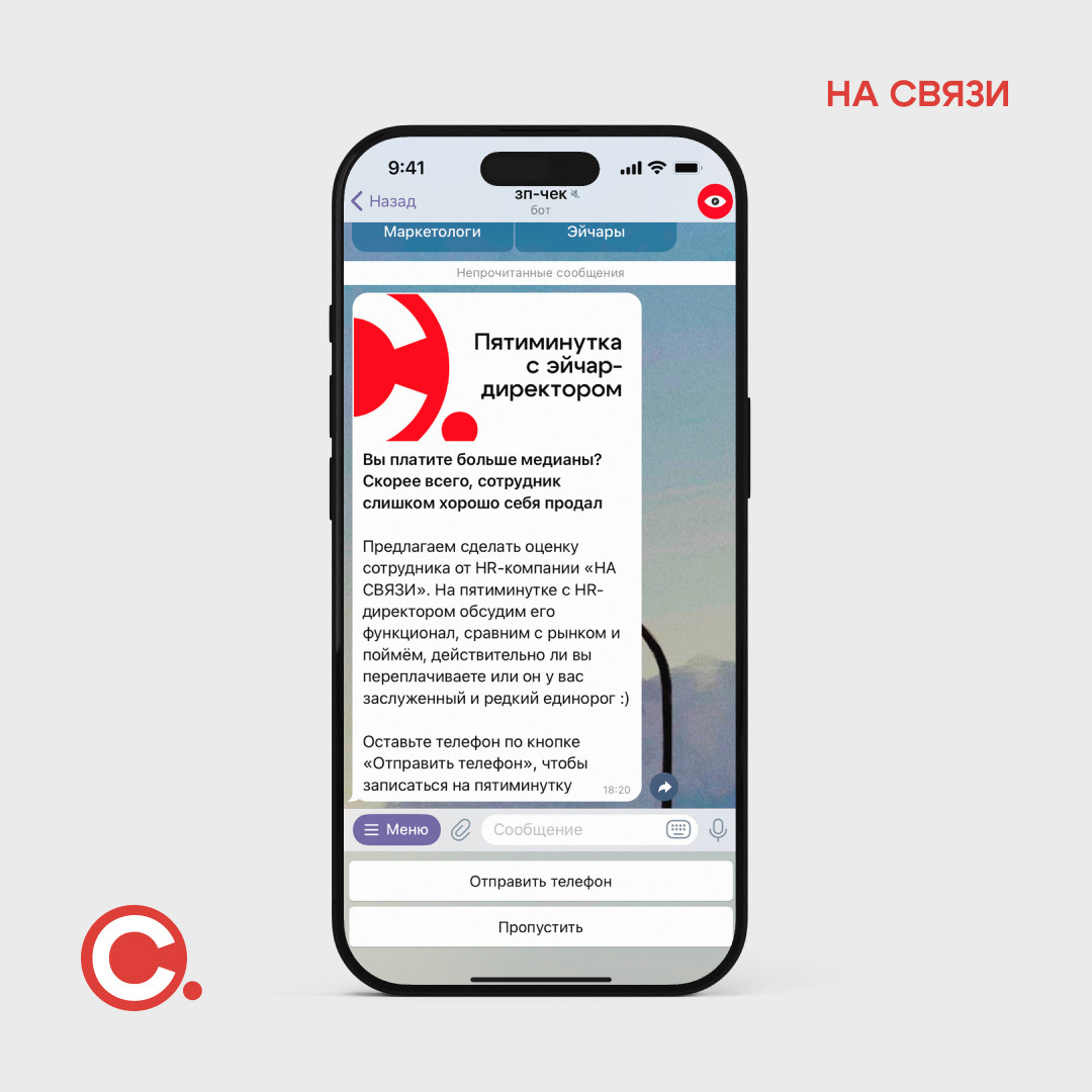 Перед нами стояла задача: привлечь подписчиков в телеграм-канал клиента — HR-компании «НА СВЯЗИ». Как мы её решили: создали полезного телеграм-бота «зп-чек», который выдаёт среднюю зарплату по диджитал-должностям. А чтобы получить результат, пользователь подписывался на канал компании.