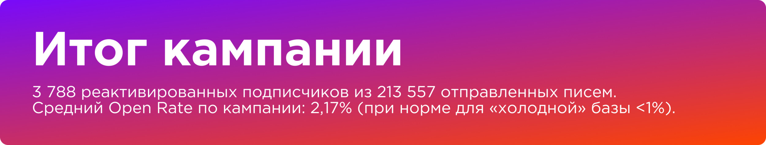 Задача: реактивировать спящих подписчиков — вернуть их к открытию писем и взаимодействию с брендом.