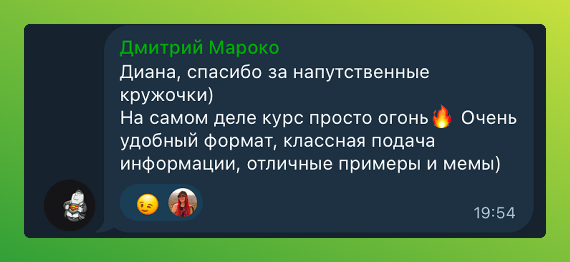 Курс должен был продаваться через телеграм-бота. Наша задача — написать весь контент: 19 больших статей, каждая с экспертом, примерами и иллюстрациями.
