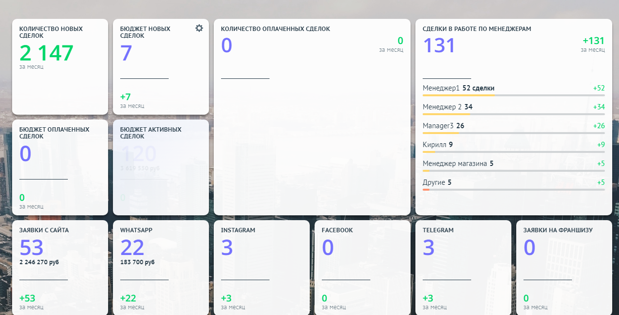 Отлсеживание ключевых показателей компании в amoCRMДля того, чтобы можно было мониторить изменения в отделе продаж, настроили «Рабочий стол». Это информационный блок, где отображается опережающие показатели, которые влияют на бизнес. Чтобы увидеть, например, результат за неделю руководителю необязательно заходить в блоки «Сделки» или «Задачи» — показатели компании есть на рабочем столе. Обучение сотрудниковПосле внедрения сотрудникам нужно привыкнуть к работе в новой среде. Чтобы отдел продаж лучше узнал amoCRM, провели обучение. Каждого сотрудника познакомили с системой, научили вести сделки, а руководителя — контролировать работу менеджеров. Когда клиент больше, чем клиент Внедрение в компанию прошло успешно, но на этом наше сотрудничество с заказчиком не закончилось. На сегодняшний день мы продолжаем развивать функционал amoCRM заказчика и следим за корректной работой виджетов и интеграций с помощью услуги «Сопровождение».