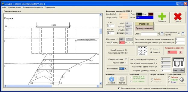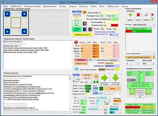 автоматическом режиме программа подбирает оптимальный свайный куст под заданные