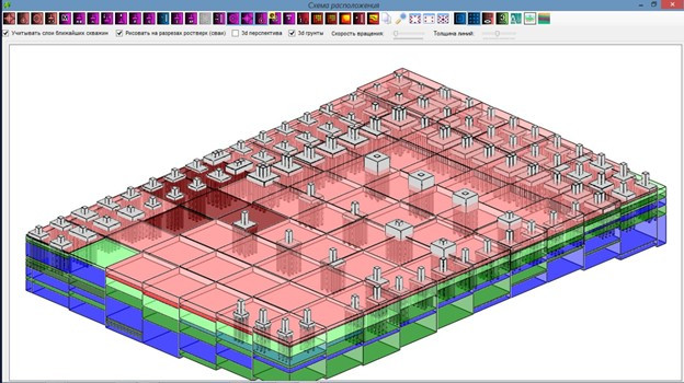 экспортирование результатов в программные среды, такие как Revit. Рис. 2 3D схема расположения ростверков Этот модуль предназначен для глубокого анализа