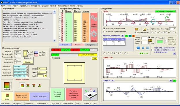 изгибающего момента и поперечной силы, а также поддерживает расчет конструкций