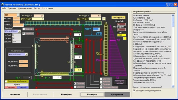 экономичные и безопасные строительные решения. Рис. 6 Интерфейс программы Расчет подземных монолитных железобетонных тоннелей с
