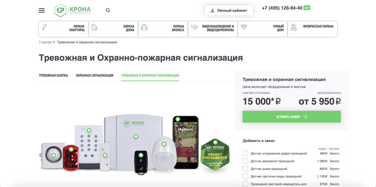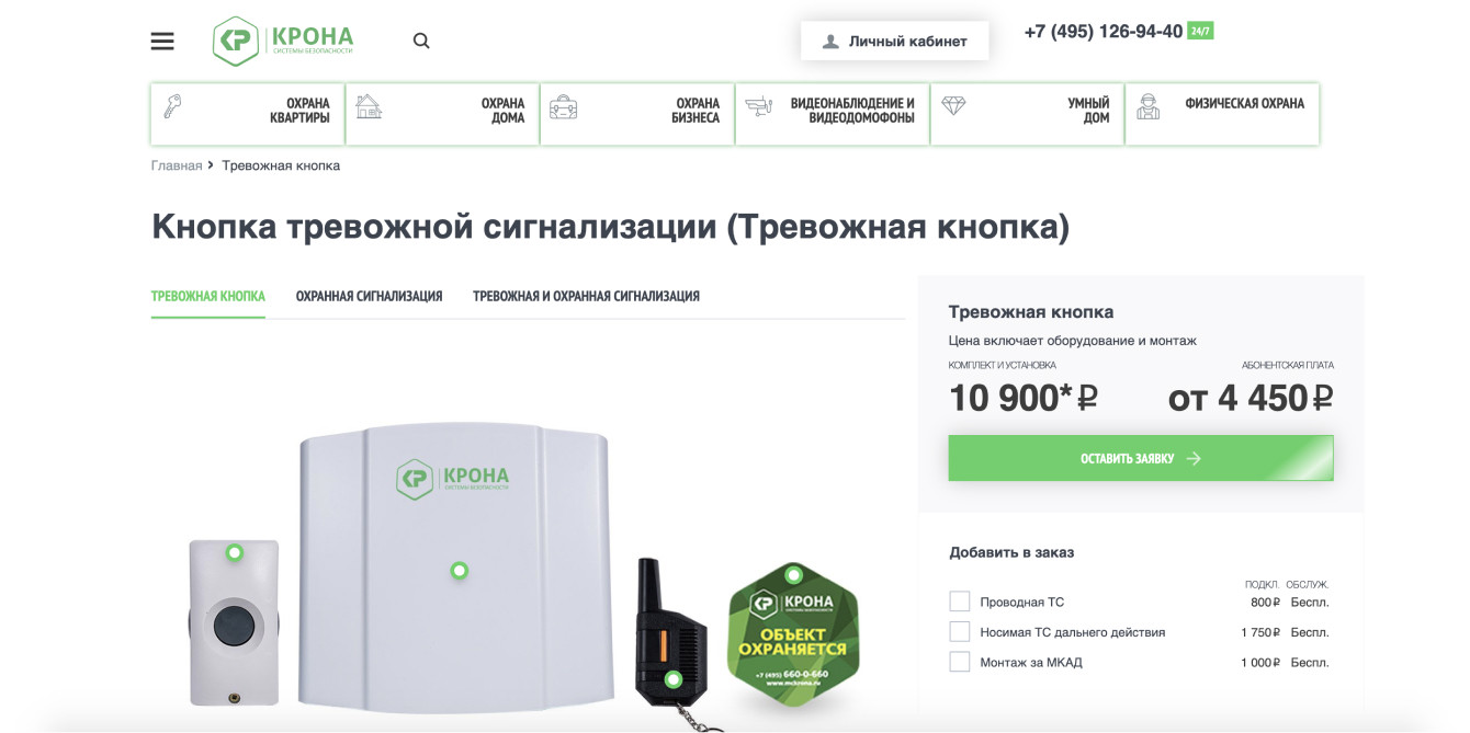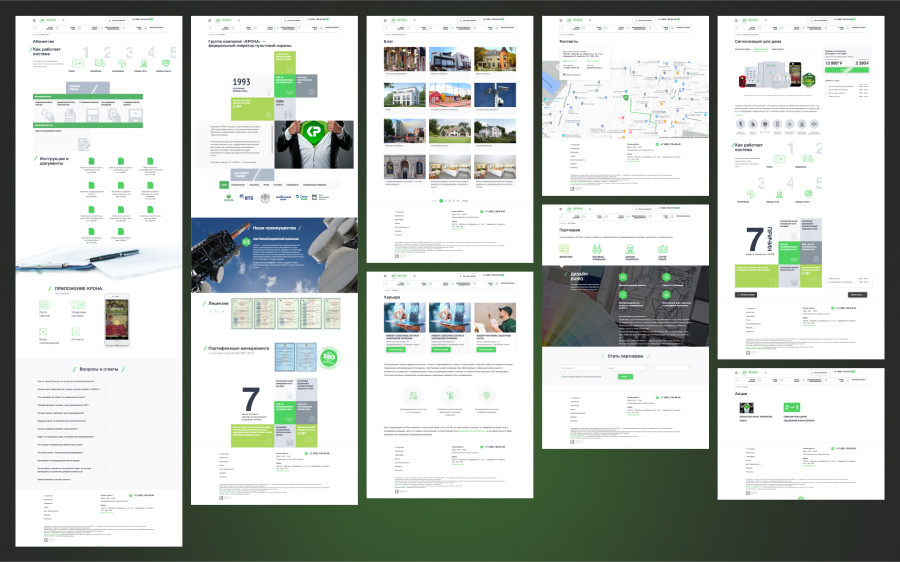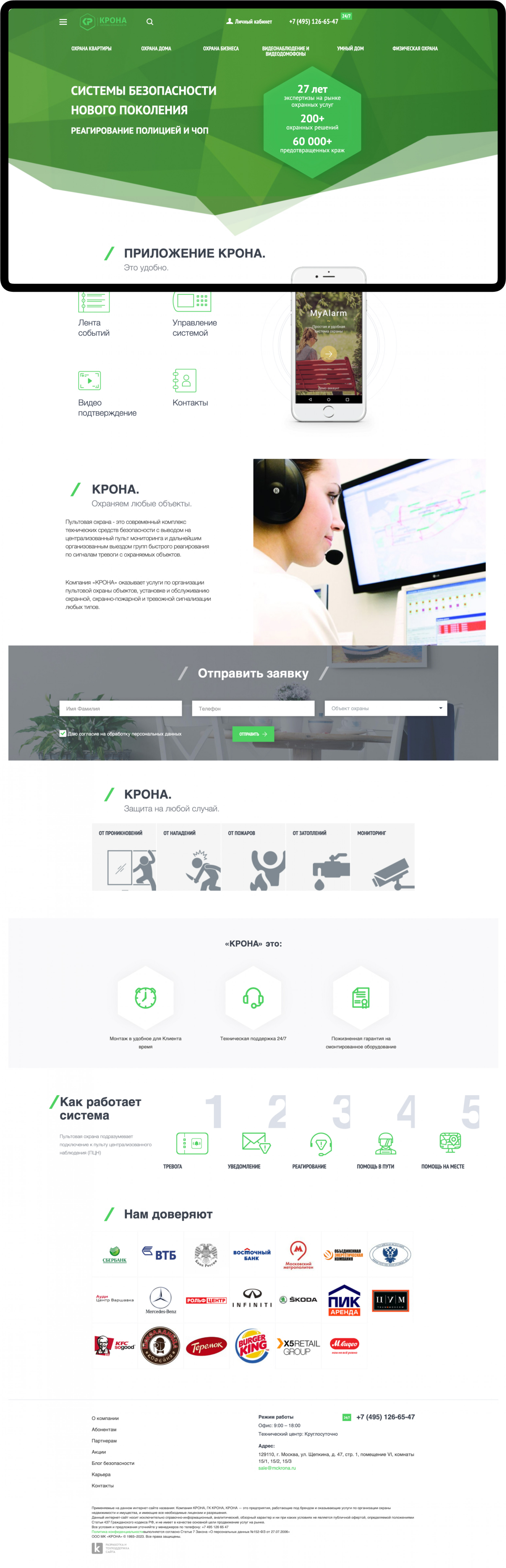Под каждый из сегментов аудитории также создана отдельная посадочная страница с уникальным калькулятором Для того, чтобы упростить масштабирование и развитие сайта, мы реализовали возможность быстрой сборки новых продуктовых страниц в формате конструктора из админки сайта. Всего создано более 14 продуктовых страниц Помимо продуктовых страниц на сайте реализованы типовые разделы для любого корпоративного сайта: Особое внимание компания уделяла работе SEO-продвижению. Мы выполнили множество работ по внутренней оптимизации сайта для поисковых систем, ускорили загрузку. Благодаря проведённым работам сайт стал отлично ранжироваться и получать целевой трафик из поисковых систем Мы детально проработали адаптивные версии, благодаря чему повысили поведенческие факторы сайта и конверсию в заявку Мы разработали и запустили новый корпоративный группы охранных компании «Крона». Дизайн сайта выполнен в фирменном стиле компании и полностью соответствует ожиданиям Заказчика. Сайт выполняет свою основную функцию — эффективно конвертирует посетителей сайта в заявки за счёт большого количества проработанных посадочных страниц и интерактивных калькуляторов. Мы уложились в обозначенные сроки и бюджет После запуска сайта мы приступили к его технической поддержке и разработке личного кабинета для группы компаний «Крона» Есть проект для нас? Давайте обсудим!)