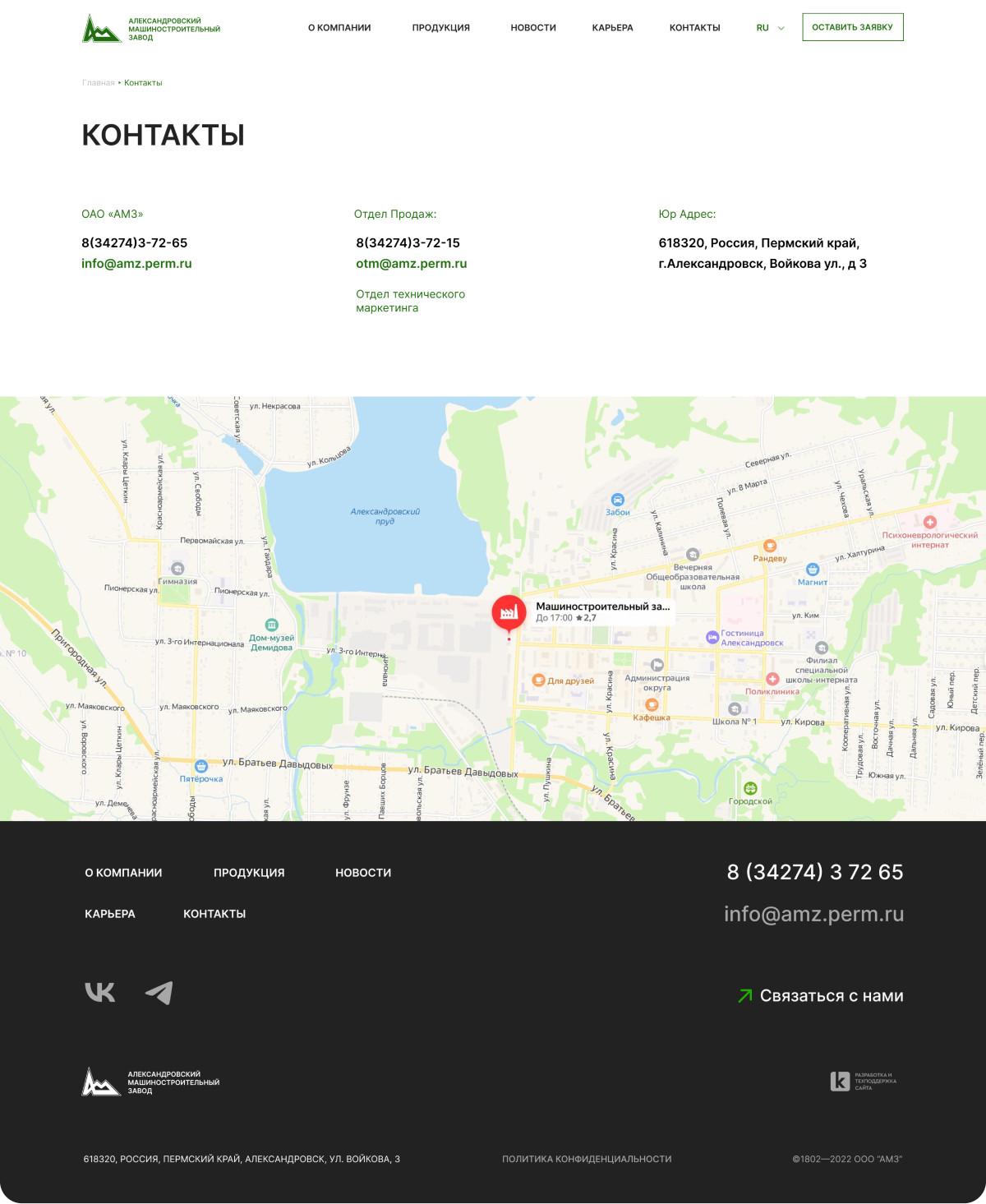 Корпоративный сайт для ОАО «АМЗ»