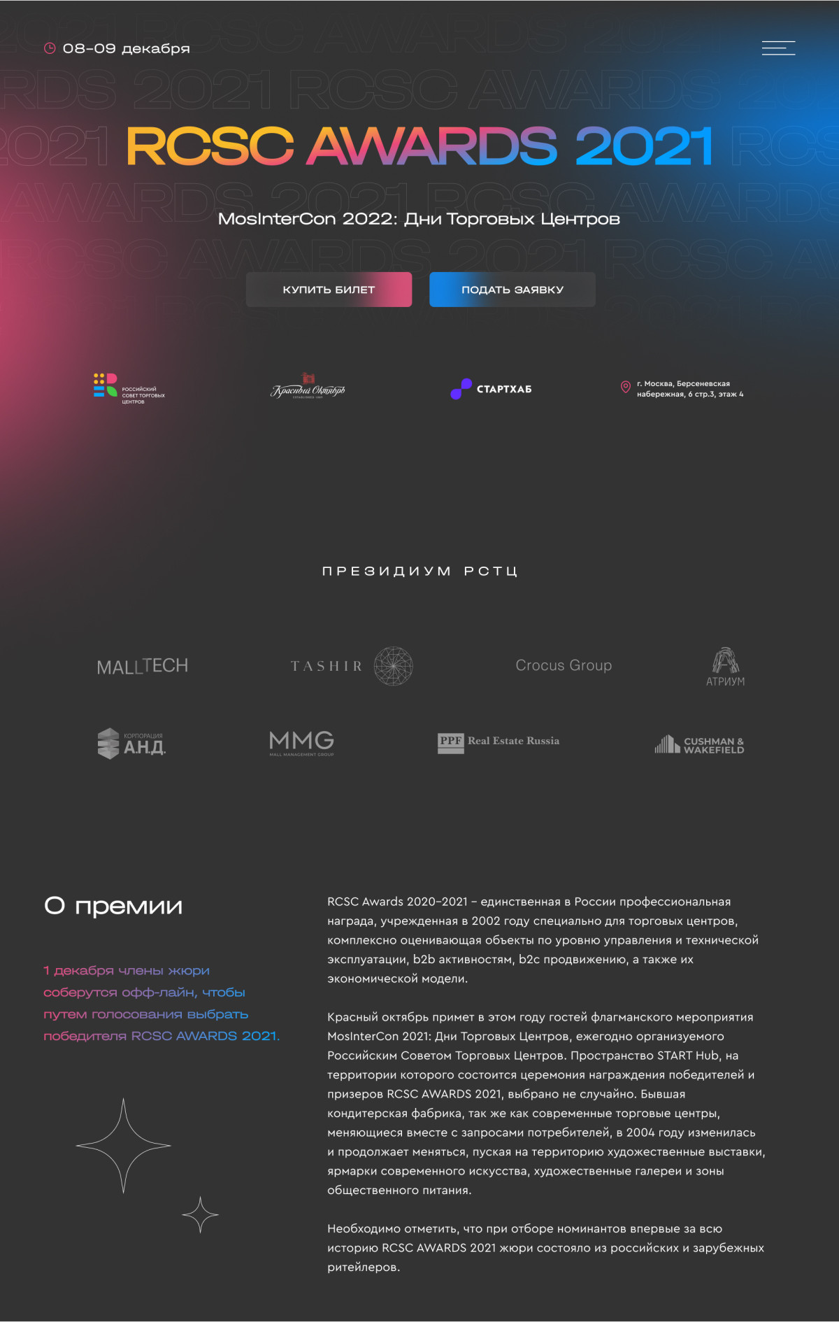 Сайт премии RCSC AWARDS 2021