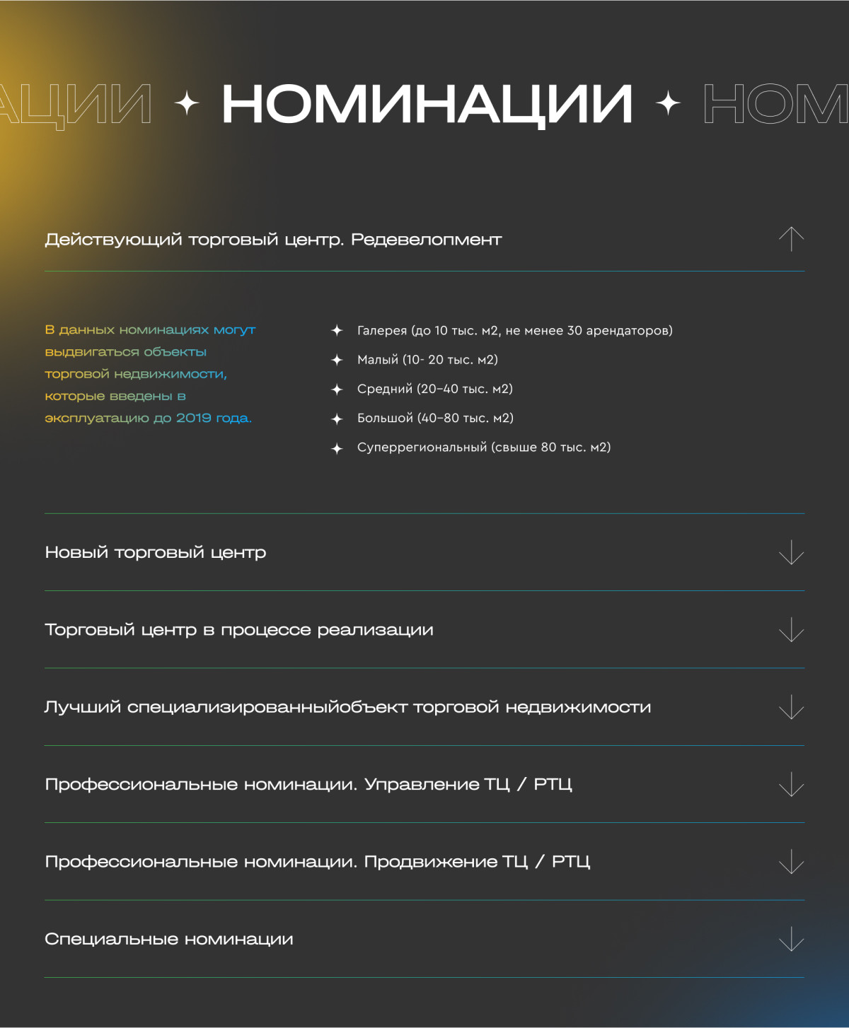 На сайте реализован функционал регистрации пользователей на мероприятие, выбора тарифа и бронирования заявки на участие в премии.