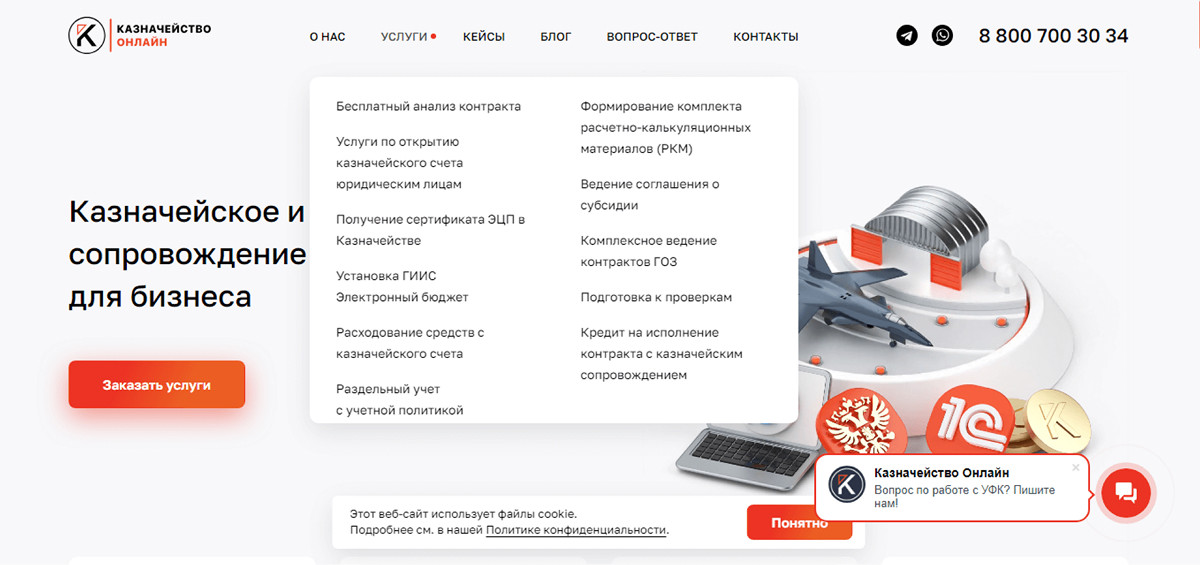 Создание корпоративного сайта для «Казначейство онлайн» - ведущей компании в сфере казначейского сопровождения