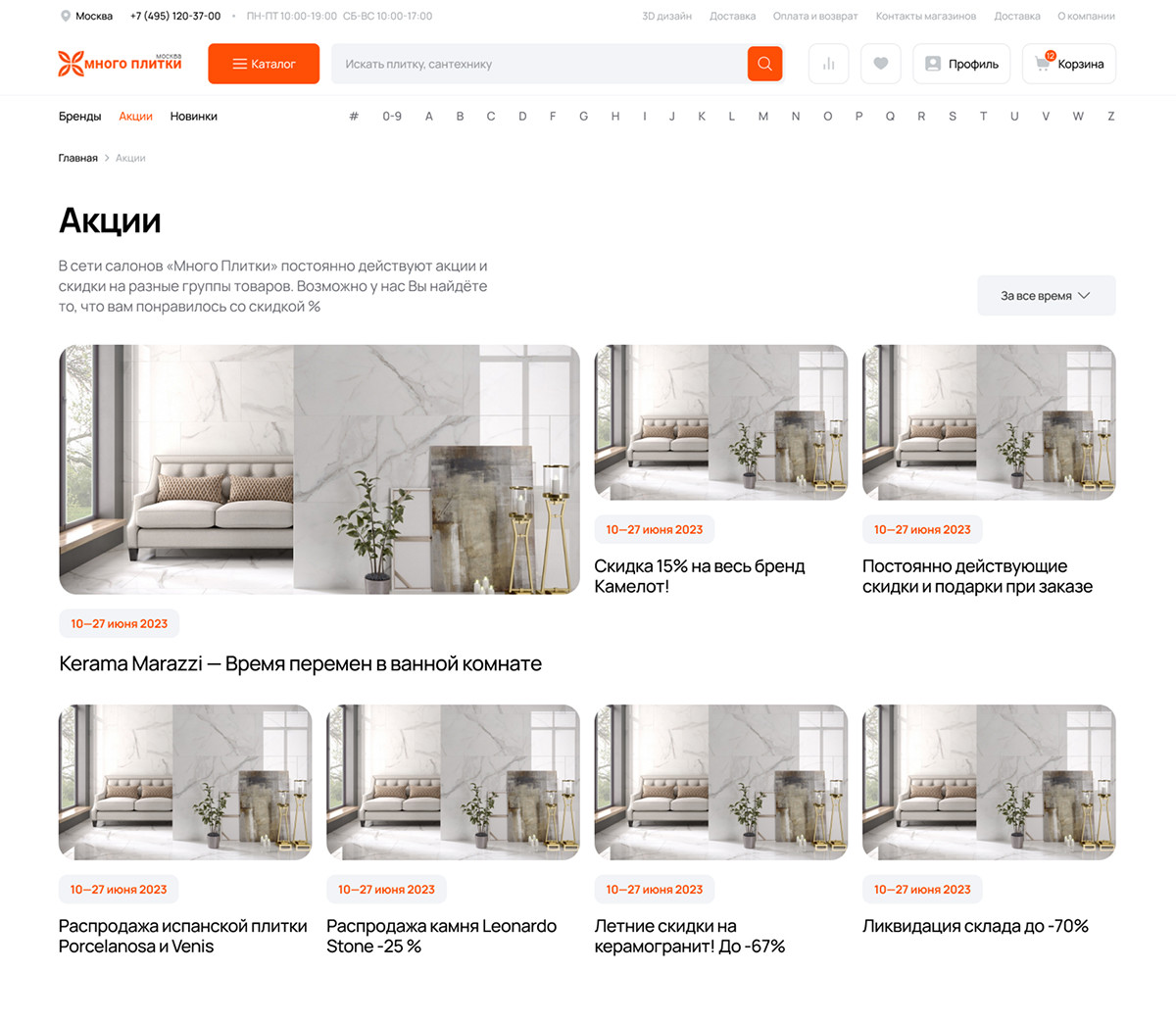 Разработка интернет-магазина для крупного поставщика плитки, строительных и отделочных материалов с удобным каталогом