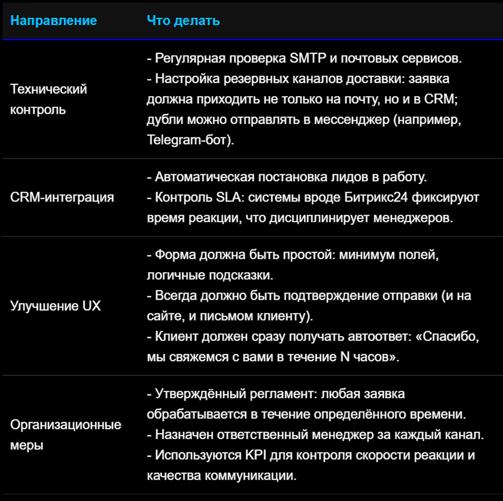 Здесь есть опасный момент: руководитель уверен, что канал работает, ведь ошибок на экране нет, форма вроде как отправляет данные. Но на самом деле компания живёт в иллюзии корректной обратной связи.