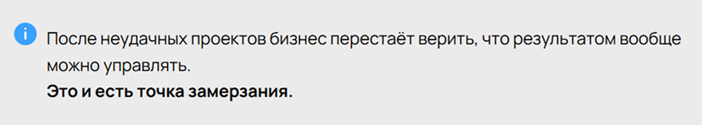 На одной отраслевой выставке мы работали с запросом на изменения сайта. Формулировка была почти дословно такой: «Да, изменения нам очень нужны. Но вы всё равно не поймёте. Мы уже пробовали, нас никто не понял. Всё не то, всё не так». С точки зрения логики это звучит как отказ от работы. С точки зрения психологии — как попытка защититься от очередного разочарования. Что происходило в реальности: Негативный опыт превращается в фильтр, через который отсекается любая попытка изменений, даже потенциально адекватная. Когда компания выбирает минимальные изменения из-за страха повторить прошлый опыт, цена ошибки растёт не линейно, а экспоненциально.