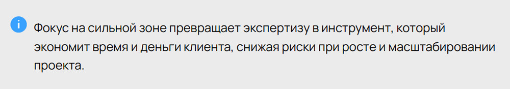 Специализация помогает сохранять высокую планку в повторяющихся сложных сценариях. Когда команда работает с одним классом задач, она накапливает не только опыт, но и насмотренность: быстрее видит архитектурные ошибки, точнее оценивает риски, лучше понимает зависимости между бизнес-логикой, интерфейсом и технической реализацией.