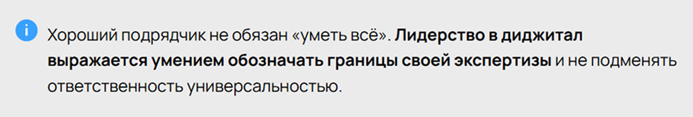 В диджитал до сих пор живет идея «одного окна»: один подрядчик делает сайт, ведет рекламу, пишет тексты, настраивает аналитику и при необходимости берется за интеграции.