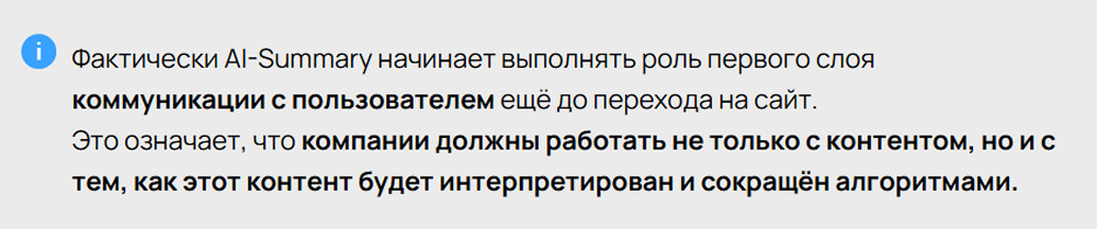 Сегодня AI-Summary (ИИ-сводка) становится способом управлять тем, как нейросети понимают ваш сайт, ваш продукт и вашу экспертизу. В эпоху AI-поиска выигрывает тот, кто первым и точнее задаёт смысл.