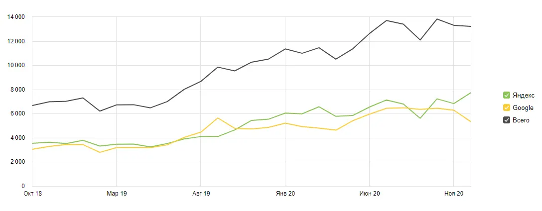 Создание рекламных объявлений контекстной рекламы. Изначально для рекламы услуг и товаров сервисного центра были созданы рекламные объявления в РСЯ и на поиске Яндекса.С объявлениями на поиске всё просто: четкое соответствие заголовка ключевой фразе. Особенно это касается узких целевых потребностей, где клиенты указывают марку и тип детали. Во втором заголовке прописали минимальный ценник, бесплатный выезд на дом и гарантии. пример рекламного объявления Корректировали РКК сожалению, аукцион по запросам ремонта бытовой техники оказался сильно перегрет: высокая конкуренция не давала получить достаточное количество трафика. Именно поэтому было решено расширить рекламную кампанию в РСЯ, откуда в дальнейшем и пошли заявки меньшей стоимости. Мы произвели некоторые корректировки: для рекламы товаров оставили поисковые рекламные кампании, для рекламы ремонта — РСЯ. Удивительно, но рекламная кампания запасных частей наоборот, показала себя лучше на поиске: все группы товаров были разделены на 6 кампаний для лучшего контроля эффективности. РСЯ в данном случае показала низкие результаты, и мы приняли решение отключить объявления. Минусация Чтобы снизить CPL, мы нещадно удаляли нерелевантные ключи и площадки, которые давали более 25-30% отказов. В ходе оптимизации было собрано более 350 минус-фраз и более 300 запрещенных для показа нецелевых площадок с высоким количеством отказов. Стоимость заявки с контекстной рекламы составила порядка 530 рублей. Снижение стоимости заявки По итогам работы можно заявить, что компания «Сайтактив» решила задачу по привлечению лидов в сервисный центр. За 4 месяца работы мы получили 6000 переходов и свыше 130 заявок. Рост количества переходов с рекламы По итогам работы мы можем сделать следующие выводы: ...Запланированные показатели были перевыполнены. Наша компания получилу новых клиентов не только в Екатеринбурге и Свердловской области, но и в целевых регионах. Наш Интернет магазин увеличил объемы продаж на 220процентов! И все это благодаря совместным усилиям наших компаний! Директор АСЦ Было полезно? Как вы действуете на перегретом рынке? Если остались вопросы — комментируйте.
