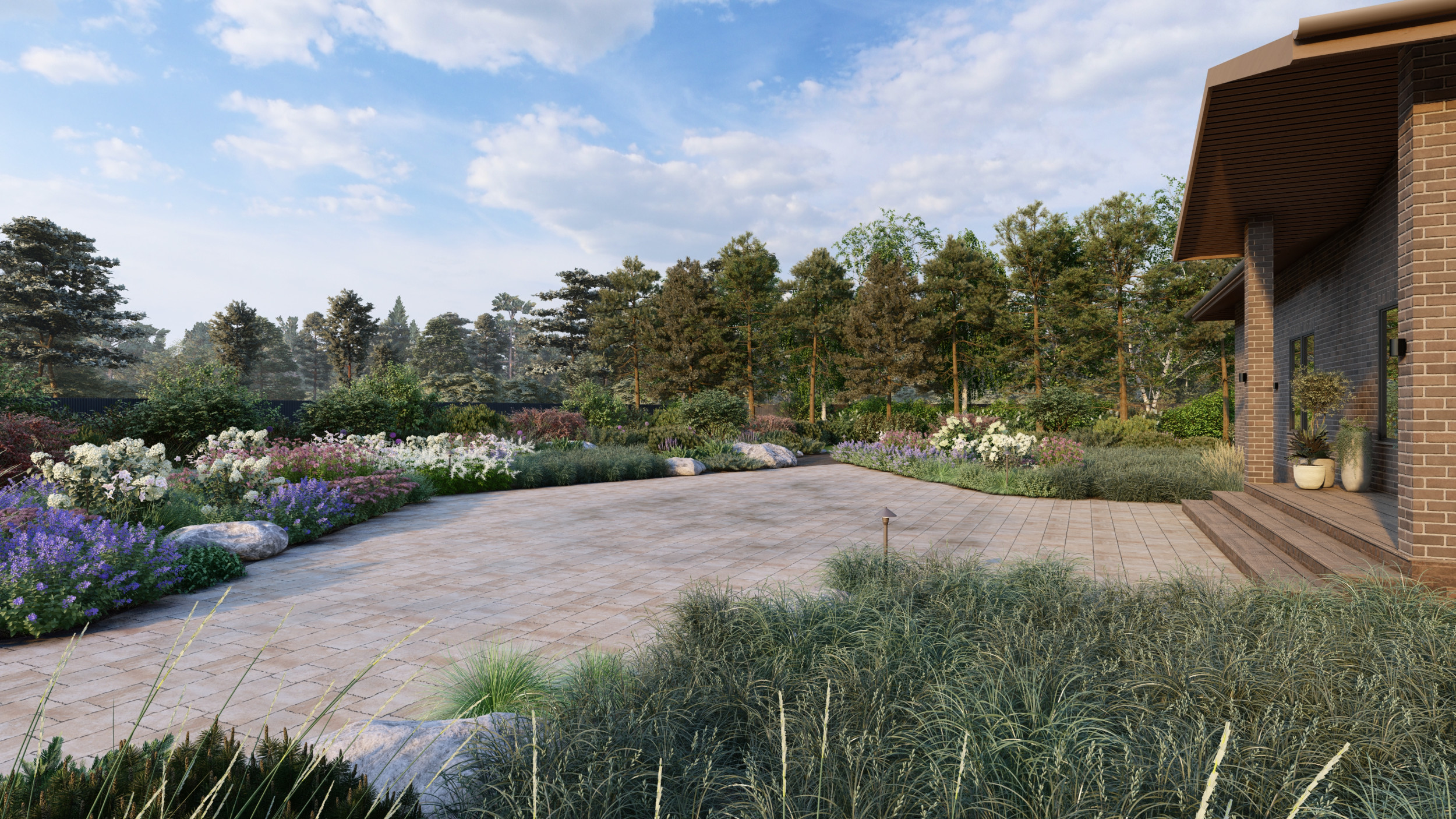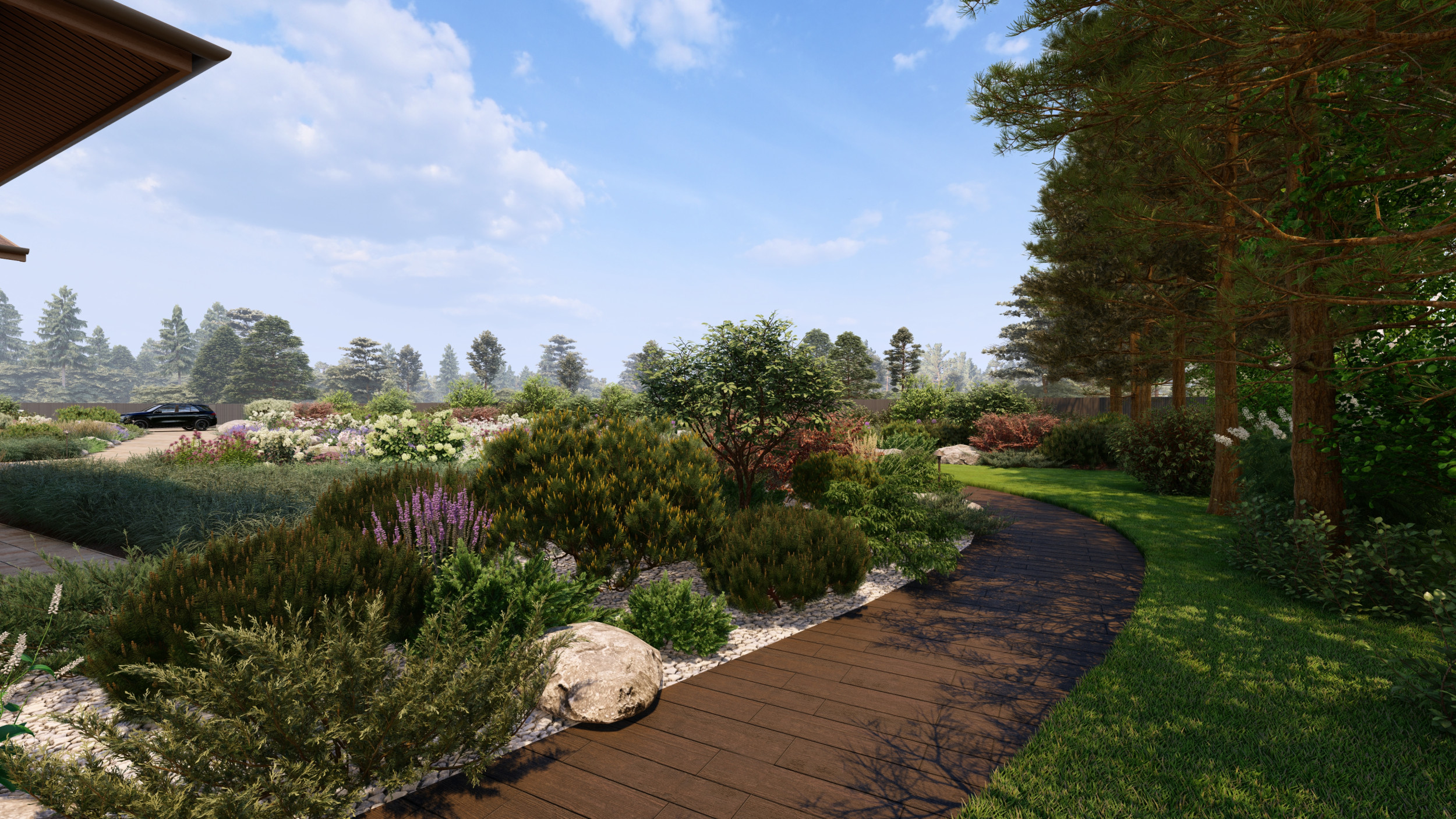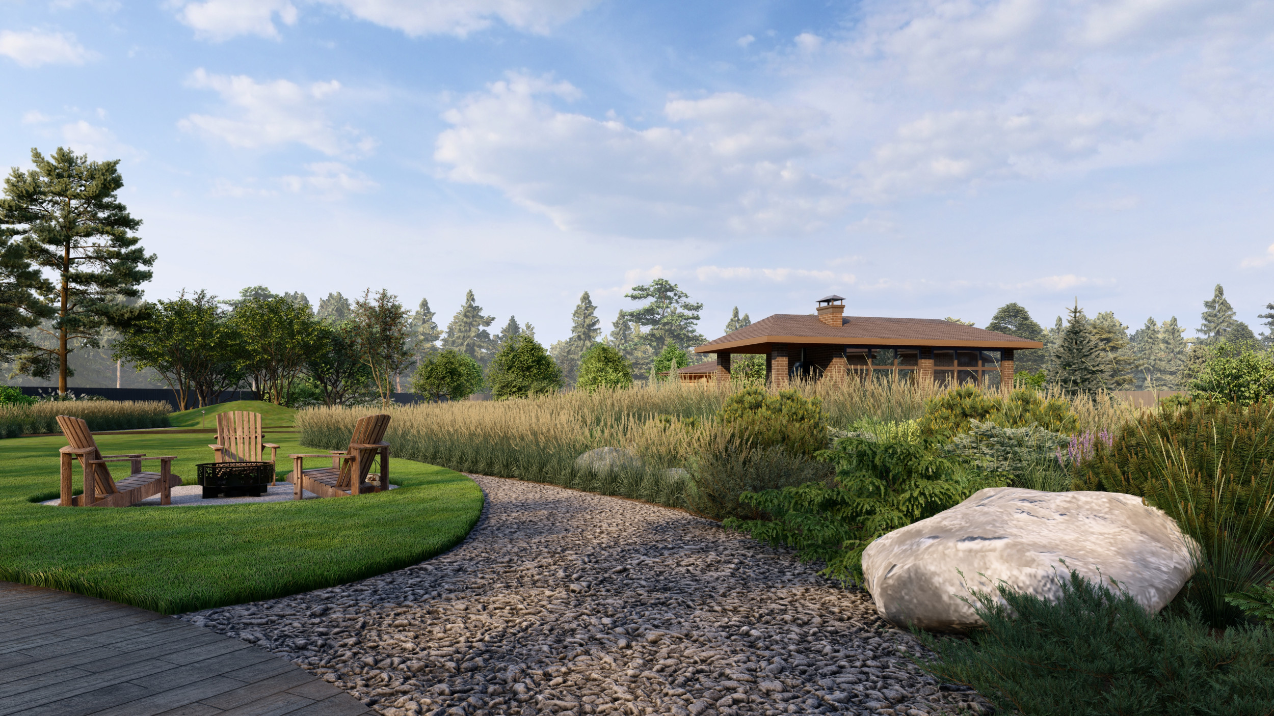 дорожек и зонирования территории. Используя природные формы и линии, мы смогли