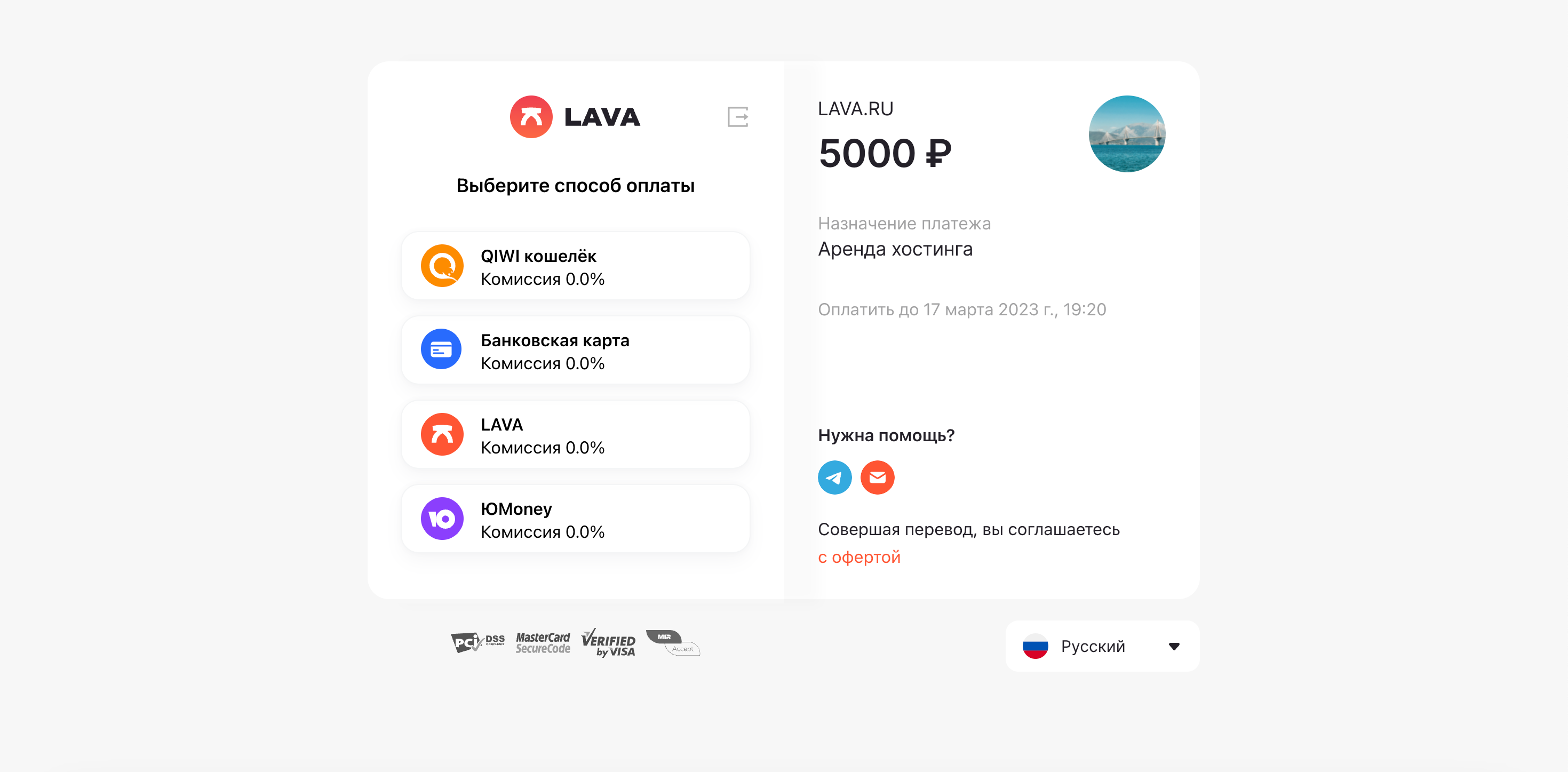 Следующий способ приема платежей — российский сервис LAVA.ru.