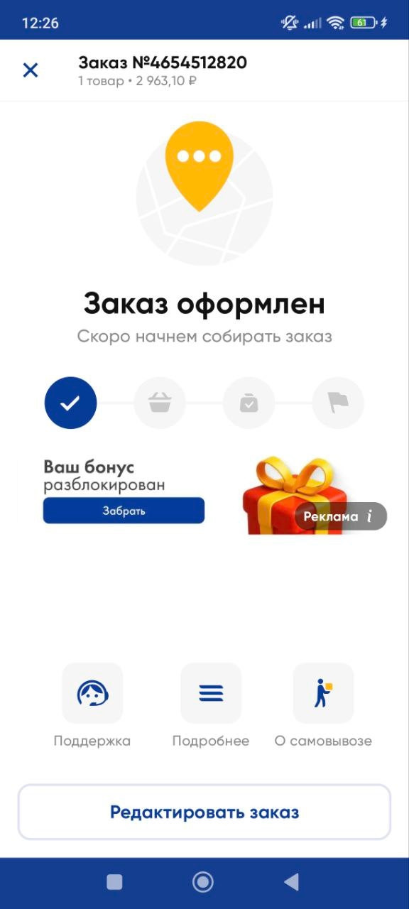В приложении «Лента» с 14 января доступен новый рекламный формат — баннер на странице после оформления заказа в формате click-out с оплатой по CPM. Этот раздел приложения — финальная точка, при просмотре которой пользователь восприимчив к предложениям. Подобный вид рекламы может быть интересен поставщикам для продвижения новинок и ценовых предложений, а также внешним рекламодателям, которые могут получить возможность вести трафик на свой сайт.