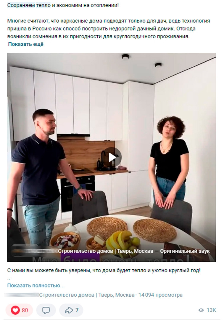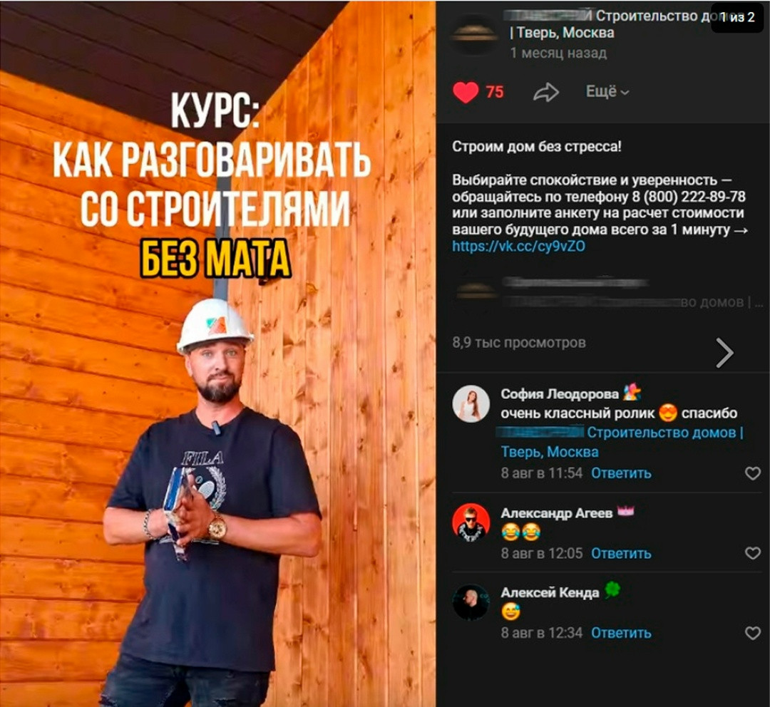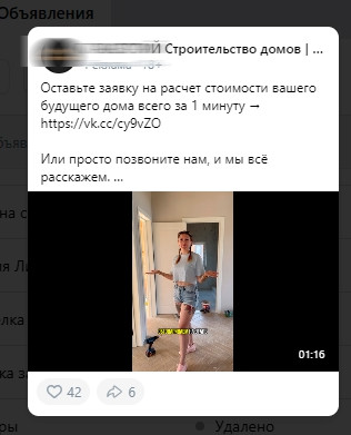 Примеры таких постов: Офферы с бесплатной консультацией и акциями (фундамент, ремонт в подарок) привлекли большое количество заявок. Люди начали активно обращаться за более подробной информацией, а конверсия запросов в Лиды выросла. Развлекательный контент, особенно клипы, привлек внимание тех, кто ещё не задумывался о строительстве дома, но заинтересовался проектом через развлекательные форматы. Вовлеченность увеличилась, что видно по количеству просмотров и переходов по ссылкам. Со следующего месяца работы мы более активно начали внедрять видеоконтент. Клипы и видеоролики сразу привлекли внимание аудитории, и уже первые результаты показали эффективность: просмотры каждого видео стабильно достигали отметки от 5К и выше. Процесс работы: Создали с ней первые объявления. Примеры самых результативных объявлений в разных форматах. Так как одной из целей являлся охват и привлечения новых подписчиков в группу, мы создали объявления на подписки и запускали записи из группы. Примеры самых результативных объявлений: Запускали объявления на сайт и раздел товаров, но особого результата это не дало. Поэтому тут же переключили 90% на ВК, так как именно оттуда шло большее количество Лидов. Вот почему эффективно всегда тестировать несколько посадочных страниц. Снимали клипы, монтировали их и запускали на рекламу. Дало очень большой отклик. Использовали различные аудитории: ключевые запросы, группы конкурентов, интересы: строительство, ипотека, покупка коммерческой недвижимости, по геопозиции. Охват сообщества на этапе нашей работы: Статистика за первый месяц работы: Небольшой срез статистики: — Прирост в подписчиках на 102 человека за месяц без конкурсов;— 31 ЛИД;— Потрачено с учетом НДС — 44 292,072 р.— Средняя цена ЛИДа с учетом НДС — 1 428,77 р.— Охват сообщества — 38 422;— Рекламный охват — 49 948,6— Показы — 295 912;— Количество переходов — 1 131;— Средняя стоимость перехода(клика) с НДС — 39. ИТОГО: 3 подписанных договора на постройку дома с общим чеком в 29 000 000+ рублей. В сложной нише, такой как строительство, необходимо всегда использовать реальные фотографии построенных домов (объектов), тщательно прорабатывать аудитории, делать качественный и интересный контент, который будет интересен вашей потенциальной аудитории.