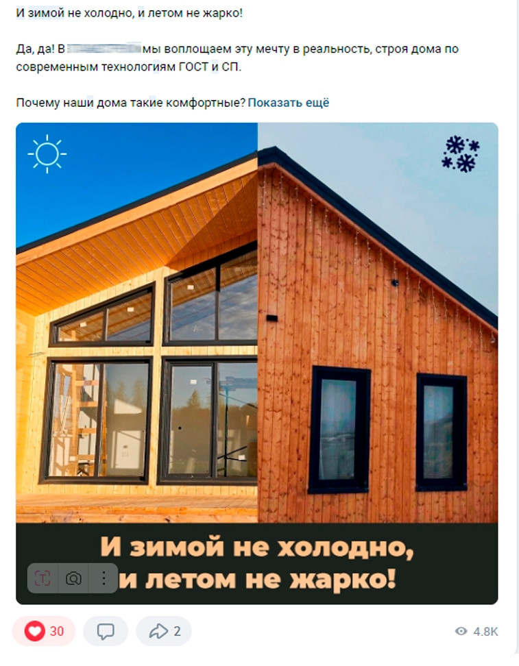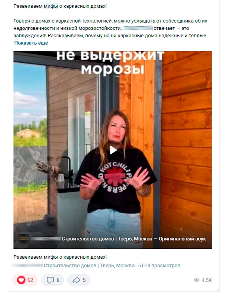Мы чередовали информативные посты о преимуществах каркасных домов и развлекательный контент, который привлекал внимание и увеличивал вовлечённость.