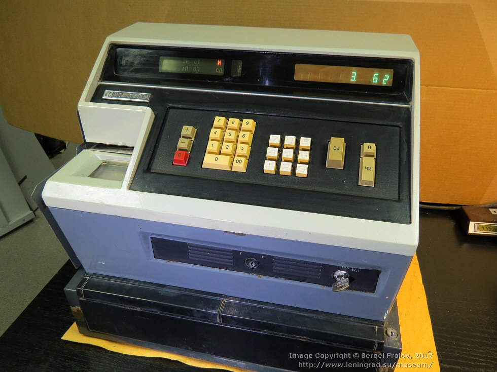 Механическая касса, которую для работы необходимо было заводить ручкой, появилась в СССР в 70-х. Этот аппарат отличался окошком контрольной ленты. В случае ошибки, используя эту фичу, можно было восстановить информацию по продажам. На задней панели кассы располагалось окно для клиента с суммой покупки, а для кассира — в удобном окне с его стороны аппарата.
