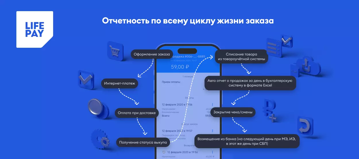 LIFE POS — это платежно-кассовое приложение, с помощью которого вы не только можете принимать оплату, но и контролировать заказ на каждом этапе.