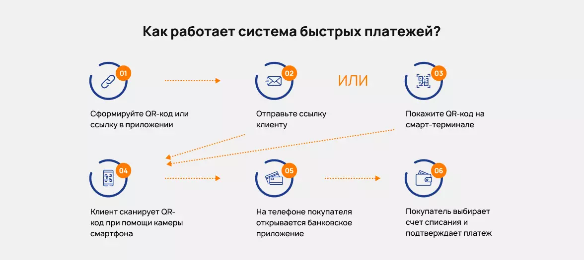 - Магазин размещает QR-код у себя на сайте, если это интернет-магазин и в кассовой зоне или рядом с товаром если офлайн; использует СМС, электронные письма и ботов для рассылки QR-кодов и платёжных ссылок покупателям;