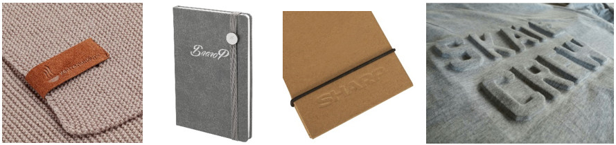 и прочему мерчу. По стойкости и долговечности превосходит прочие варианты нанесения логотипа на текстиль, но дороже и дольше в изготовлении. В среднем срок изготовления 7-10 дней, тираж 500 — 5000 штук. Гравировка (лазерная гравировка) подходит для металла, дерева, кожи, стекла и некоторых видов пластика и не вызывает деформации основы.
