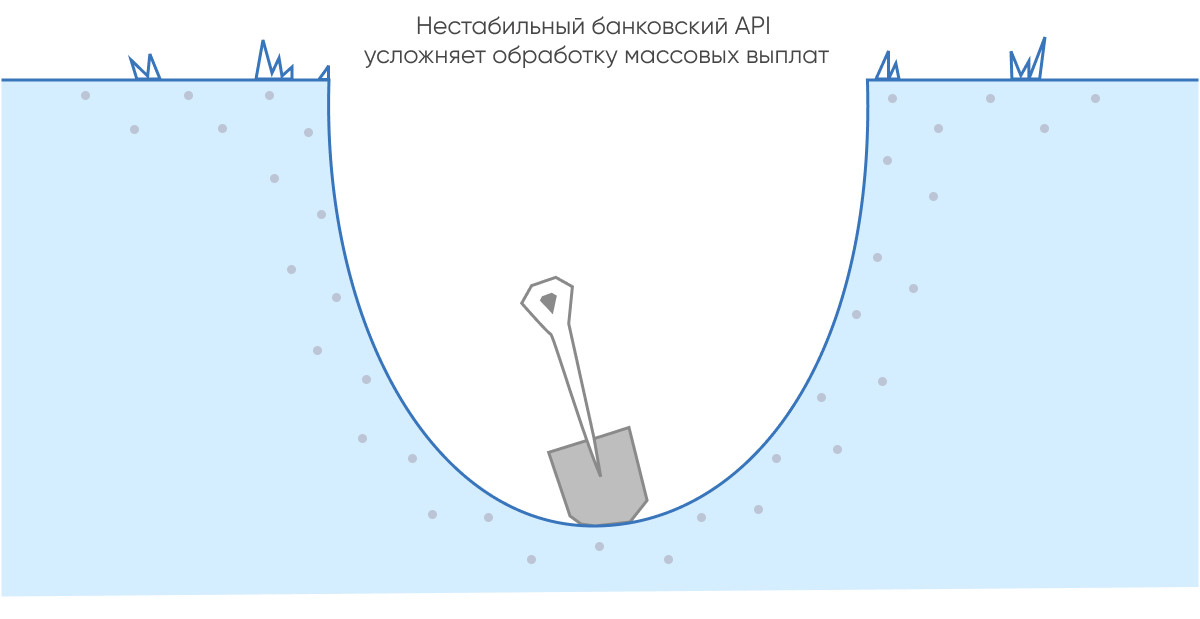 Банк N, через который проводились выплаты, стал работать нестабильно: чтобы реестр выплат проводился без задержек, было решено интегрировать платформу с новым банком M. Для бизнеса сотня или тысяча выплат самозанятым в месяц — это критично.