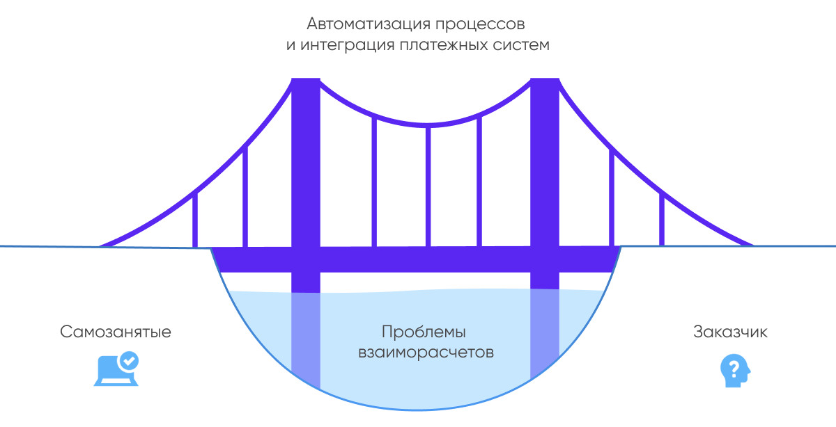 Сегодня бизнес активно привлекает самозанятых на конкретные проекты или для решения разовых задач, поэтому спрос на платформы и сервисы для такого взаимодействия растет. При этом многие компании, активно работающие с самозанятыми, сталкиваются с ограничениями существующих платформ: высокие комиссии (до 20% от платежа!), сложности с получением чеков от самозанятых для подтверждения факта оказанных услуг и снижения налоговой нагрузки. В результате все больше компаний-заказчиков принимают решение отказаться от использования сторонних платформ в пользу разработки собственных сервисов для найма самозанятых.