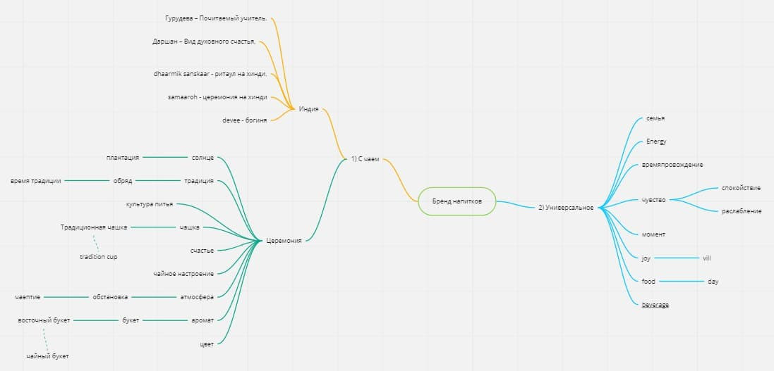 - Составление метальной карты (mind map) помогает не потерять идеи. Такая схема благодаря визуализации позволяет создавать большие ассоциативные ряды и хорошо в них ориентироваться. В центре листа пишется главное слово, а вокруг ассоциации и связанные с ним понятия. В «Логомашине» для работы с ментальными картами мы используем сервисы Miro и Coggle.