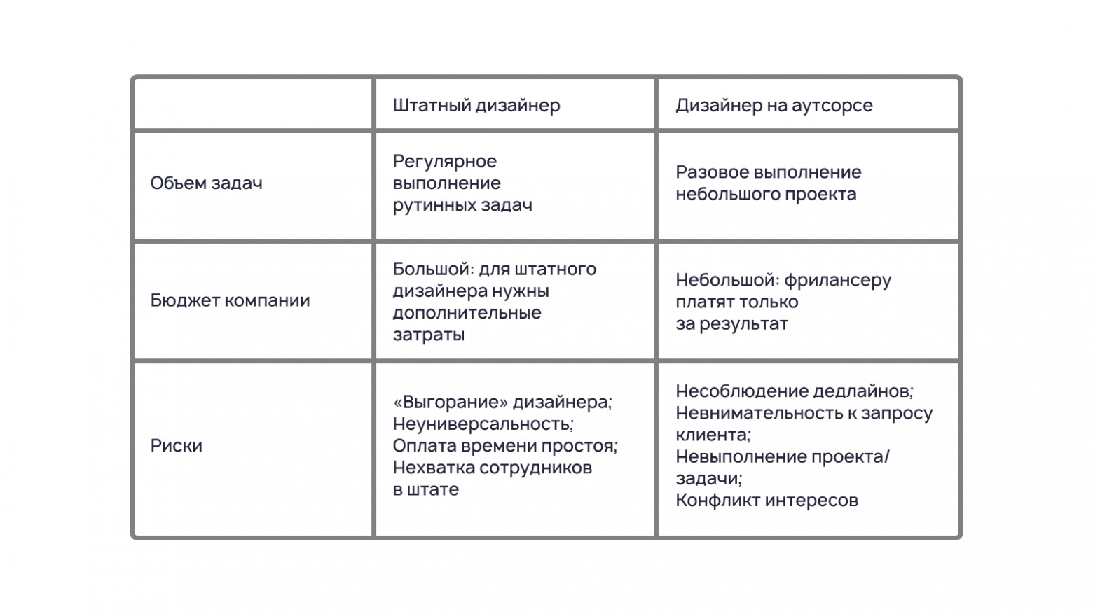 Кажется, что штатный сотрудник незаменим и минусов у него быть не может, ведь он регулярно трудится на благо одной компании. Однако в работе «своего» дизайнера есть особенности, которые могут оказаться невыгодными.