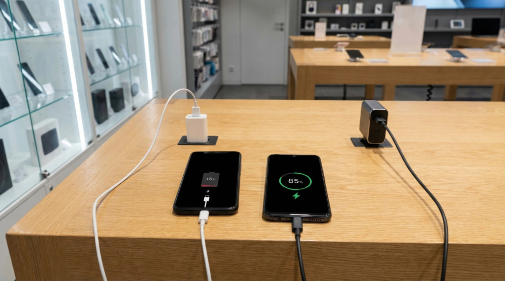 Быстрая зарядка стала ключевым фактором принятия решения о покупке смартфона в 2026 году. Пользователи готовы доплачивать за экономию времени, что создает возможности для бизнеса. Рынок зарядных устройств показывает рост 28% YoY при средней марже 45-65%. Флагманы поддерживают 65-120 ватт мощности, открывая премиальный