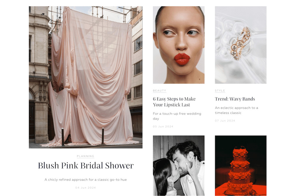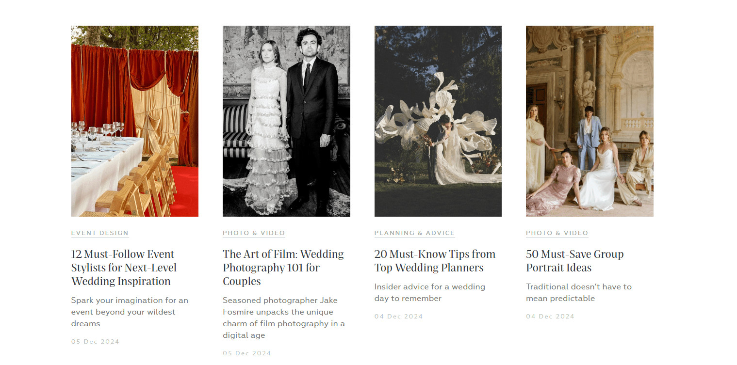 Теперь давайте познакомимся со стартовыми данными по проекту. В структуре онлайн-медиа уделяется особое внимание каталогу топовых свадебных подрядчиков: Второй важный раздел сайта — свадебное медиа, которое помогает формировать лояльное сообщество вокруг бренда и повышать к нему доверие. Само собой, весь контент на площадке англоязычный: нам предстояло ориентироваться на пользователей из США, Англии, Австралии, Канады и так далее. При этом клиенту на данном этапе был важен трафик на весь сайт, а не на конкретный раздел, что немного расширило наши возможности. В работе мы учитывали дополнительные пожелания клиента и строгую редполитику издания. В частности, нам запрещались доработки сайта по визуалу и функционалу — было важно сохранить исходный минималистичный дизайн. Также были ограничения и по текстовой оптимизации: никаких сеошных заголовков на страницах, никаких длинных лонгридов. В то же время редколлегия журнала помогала нам продуктивностью: на сайте уже было свыше 200 статей, которые ждали своей оптимизации, и каждый день выходили еще 1-2 новых материала. Стоит отметить, что на момент нашего сотрудничества проекту было около 3 лет. А поскольку мы работали с Google как с основным поисковиком за рубежом, это создавало некоторые сложности. В выдаче по ключевым запросам мы столкнулись с возрастными конкурентами. По ссылочному профилю эти сайты также нас обгоняли, но на линкбилдинг у нас был выделен бюджет в $1000. Переводим речь сотрудников ЗАГСа на понятные слова: первым делом нам предстояло проконтролировать переезд сайта с одного домена на другой. Перед этим наша команда успела провести полный техаудит, в рамках которого нашла несколько ошибок: Когда все недочеты были нами устранены, пришла пора переезда. Мы подготовили для разработчиков всё, что необходимо для минимизации трафиковых потерь в этот период. Прежде всего, настроили и проверили редиректы. В результате трафик в месяц переезда упал всего на 10%, а учитывая, что на сайте было свыше 1000 страниц, это очень неплохой показатель. На следующий месяц, когда Google закончил индексацию, трафик уже вернулся к прежним значениям. Шаблон сайта был заимствован заказчиком у другого его проекта, но русскоязычного. Из-за этого некоторые URL-адреса были неактуальны. Более того, на отдельных страницах всё еще сохранялась информация на русском. Такая ситуация могла негативно сказаться на доверии и пользователей, и Google. Также надо отметить, что англоязычный контент создавался для сайта русскоговорящими авторами. Из-за этого материалы местами содержали ошибки. К примеру, мы обнаружили, что кое-где вместо латинской буквы «C» использовалась «С» из кириллицы. Чтобы страницы не теряли позиции и трафик из-за недочетов, мы отдельно спарсили сайт на наличие кириллических символов и подготовили ТЗ на устранение других ошибок. Техническая часть закончилась, но оставалась базовая текстовая оптимизация. Сначала мы проработали метатеги для тех материалов журнала, которые входили в топ-30 поисковой выдачи. Но этого было недостаточно, так как статей на сайте много и они продолжали появляться. В дальнейшем мы старались придерживаться стабильного графика: ежемесячно прорабатывали теги для новых материалов и 50-70 старых. Вслед за первой проработкой журнального раздела мы собрали коммерческую семантик