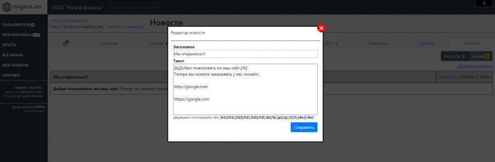 Для тестирования возможностей системы пройдите по адресу https://magazin.am