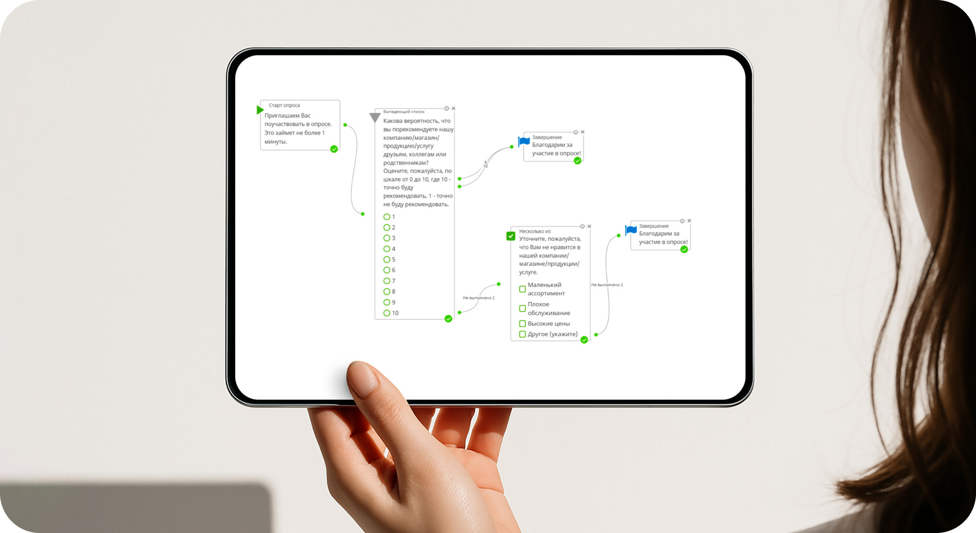 - К опросу добавляются дополнительные вопросы — например, с уточнением причин недовольства или предложением оставить комментарий.
