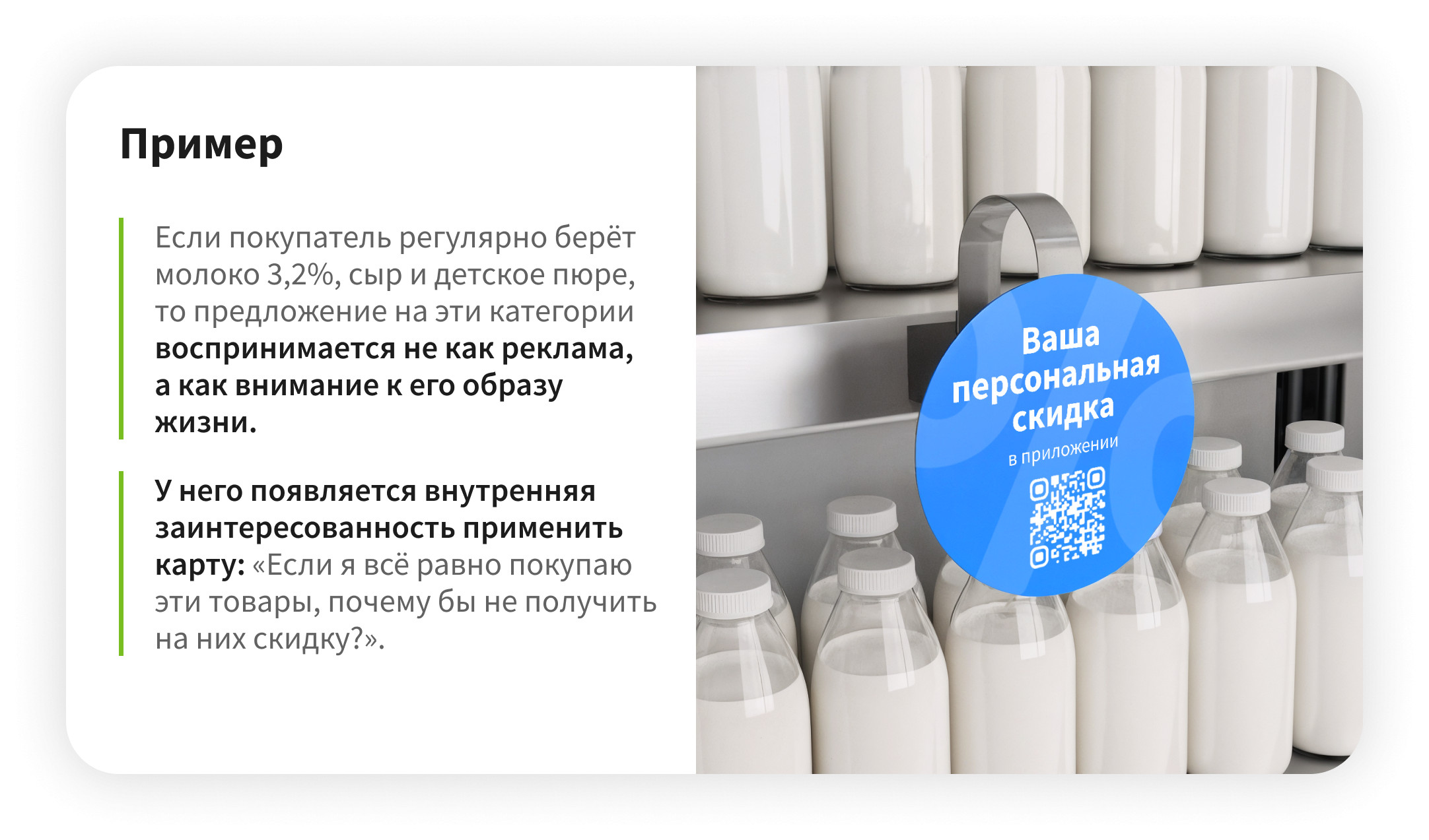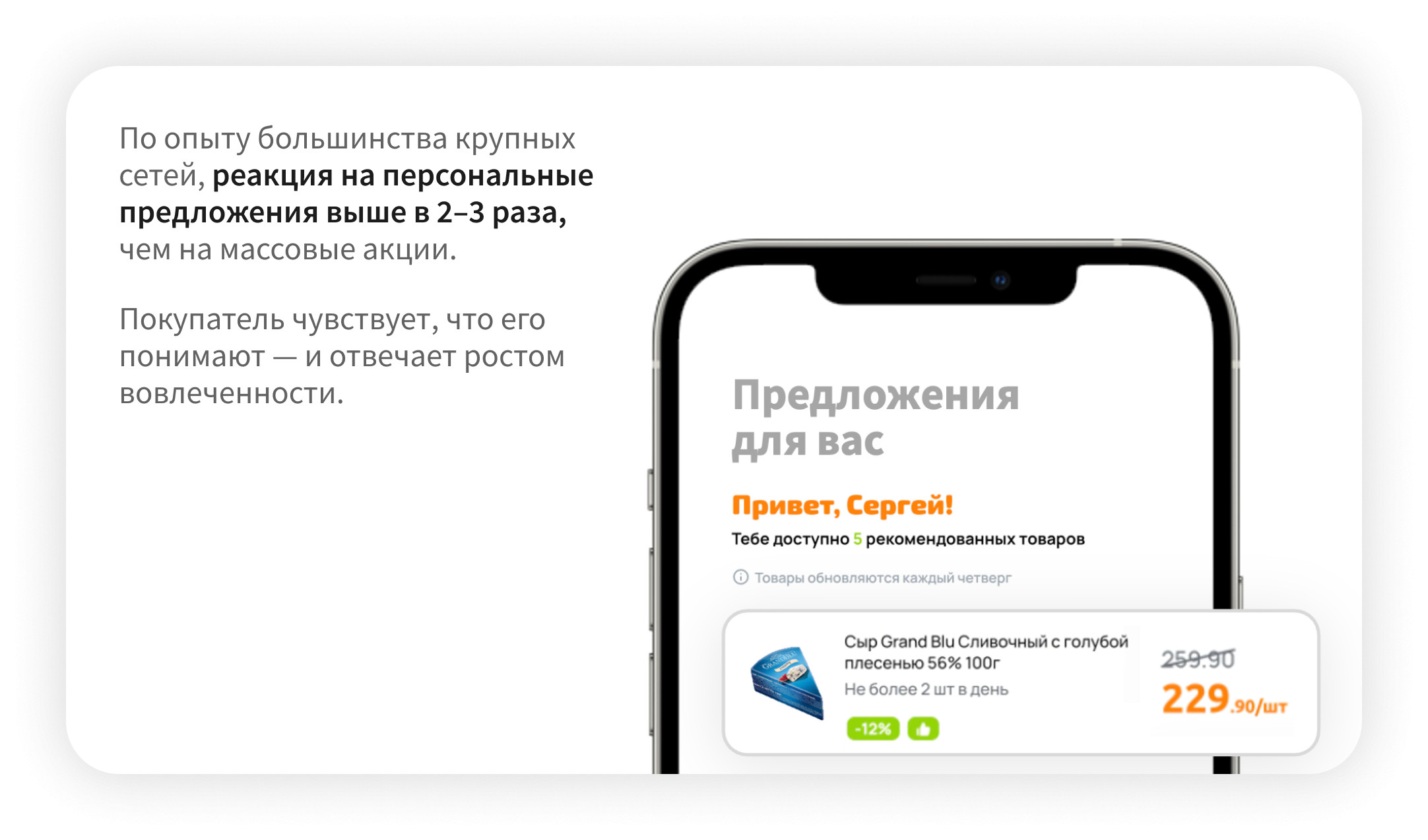 Это простое, визуально заметное, но очень грубое средство. Оно говорит с покупателем на языке массовой выгоды, а не индивидуальной потребности: их эффективность с точки зрения вовлечения в программу лояльности ограничена из-за того, что эти предложения универсальны и не учитывают личные предпочтения покупателя. В результате, когда кассир предлагает приобрести товар по карте, покупатель часто реагирует отказом, воспринимая предложение как навязывание. Отсутствие индивидуальной ценности формирует у потребителя пренебрежительное отношение к такого рода предложениям. Персональные акции решают проблему ценности предложения фундаментально. Они не навязываются — они резонируют с реальной потребностью.