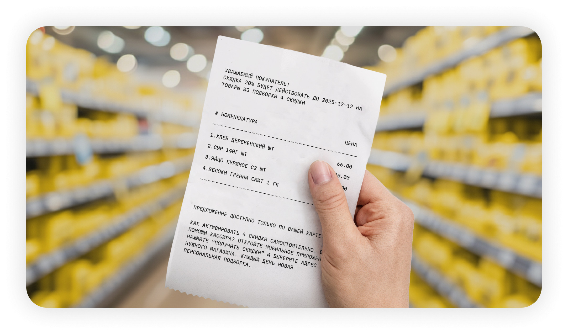 Так рождается естественная, добровольная мотивация к участию. Основной барьер при использовании персональных акций для расширения базы программы лояльности или реактивации спящих участников — это коммуникация. В то время как активные лояльные клиенты получают информацию через digital-каналы (мобильное приложение, email, push-уведомления), значительная часть аудитории не использует мобильные приложения, не читает email, игнорирует SMS. Для эффективного вовлечения этой оффлайн-ориентированной аудитории критически важно использовать физические каналы коммуникации в торговом зале и на кассе. Для решения этой задачи ритейлеры успешно применяют такие оффлайн-каналы, как: Шелф-токеры. Непосредственно рядом с товаром размещают яркие, привлекающие внимание токеры. Сообщение информирует покупателя о возможности получить дополнительную персональную скидку на товар, призывая его либо проверить приложение, либо спросить на кассе. Этот метод служит физическим мостом между товаром и digital-предложением. Шелф-токеры работают как визуальный триггер прямо в момент выбора товара, мотивируют клиента скачать приложение и при этом не требуют рекламного бюджета. Главное — грамотно подбирать формулировки и дизайн: они должны вызывать любопытство, а не раздражение. Стикеры и наклейки в зоне касс самообслуживания (КСО). Зона касс самообслуживания — идеальное место для напоминания о выгоде по карте. Наклейка на экране или панели может сообщать: «По карте у вас есть персональные скидки — примените её и узнайте подробности». Это привлекает внимание покупателя и те из них, у кого есть карта, применяют, чтобы узнать о своих скидках. Индивидуальные предложения от кассира. Современные кассы, интегрированные с программой лояльности, позволяют вывести на экран кассира информацию о персональных акциях конкретного клиента, если он предъявил карту. Таким образом: — кассир может персонально озвучить выгоду («У вас сегодня скидка на кофе и шоколад!»), — после оплаты распечатать слип-чек с перечнем доступных перcональных акций и инструкцией, как посмотреть их в приложении. Такое сообщение воспринимается как забота, а не реклама. Сообщение на дисплее касс самообслуживания (КСО). Многие сети уже используют этот экран для демонстрации того, как изменится цена при применении карты на товары, участвующие в массовом промо. Аналогичный механизм может быть использован для вывода сообщения о наличии персональных скидок. После применения карты покупатель видит свои персональные предложения на экране КСО и получает поощрения по ним. Эти каналы обладают рядом ключевых преимуществ: Успешный пример из практики продуктовой сети демонстрирует эффективность омниканальной интеграции: Таким образом, персонализация может стать не просто инструментом для максимизации прибыли от лояльного ядра, а высокоточным механизмом вовлечения новых участников. Для этого важно использовать бесшовные, интегрированные каналы коммуникации (оффлайн-to-digital) для донесения персонализированной ценности до каждого покупателя в нужный момент.