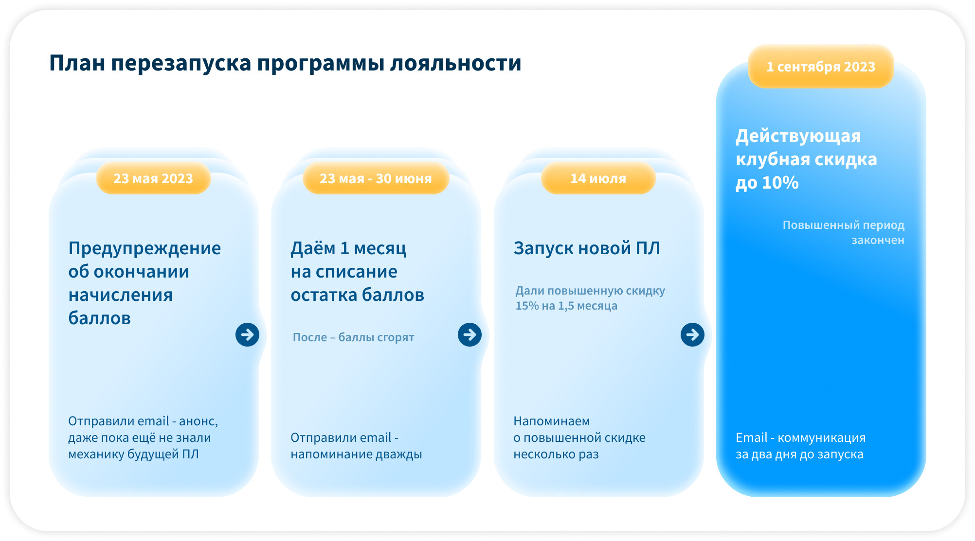 — Закрыть старую механику без «боли» для клиентов.