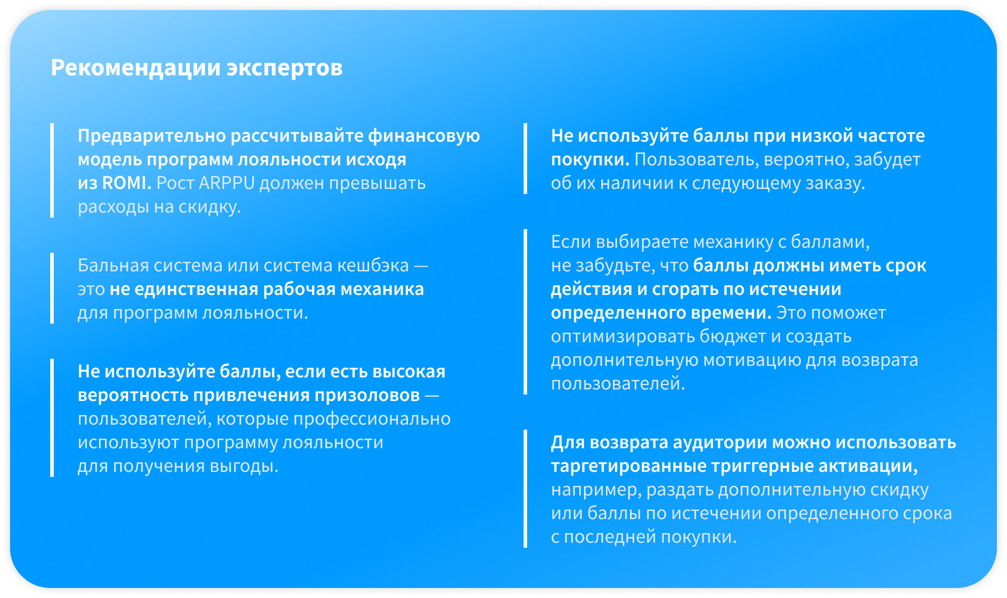 - Накопление большого объема неиспользованных баллов, создающего обязательства перед клиентами и нагрузку на финансы компании.