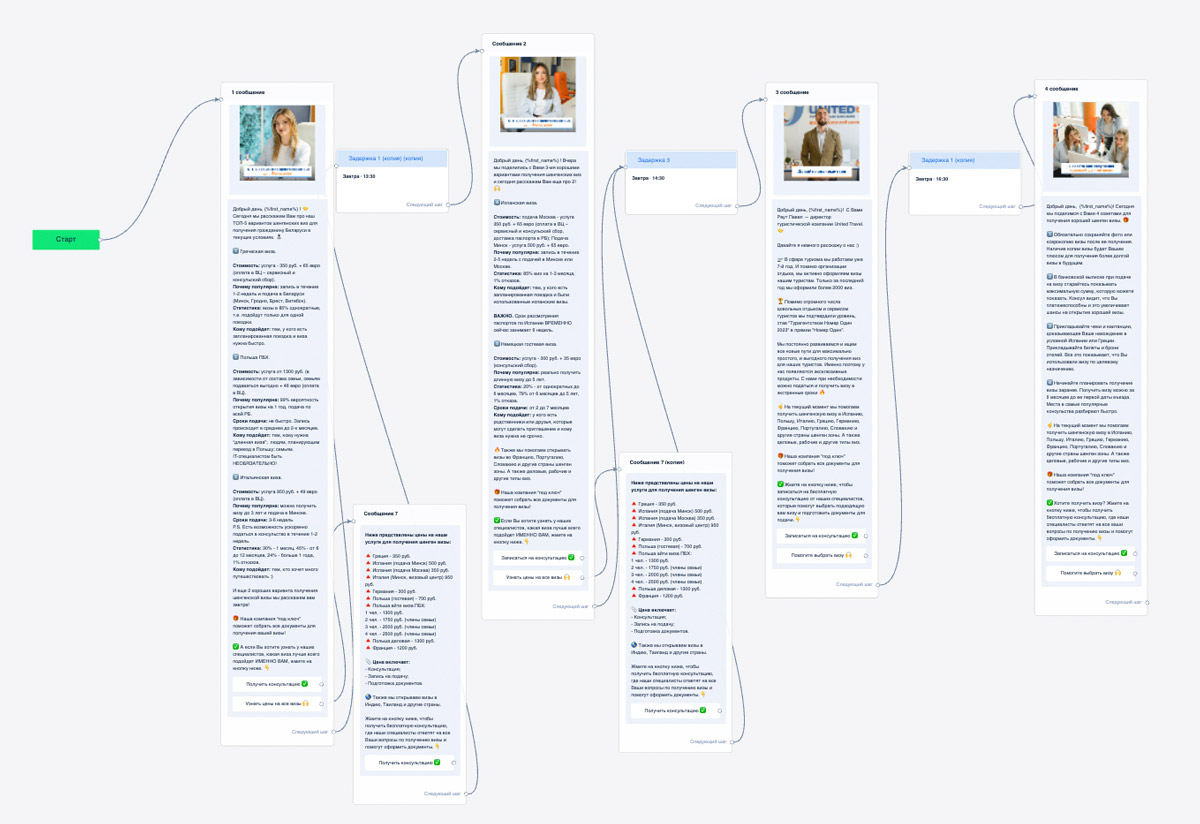 И так давайте разберем ключевые шаги создания автоворонки в мессенджерах для визового агентства.