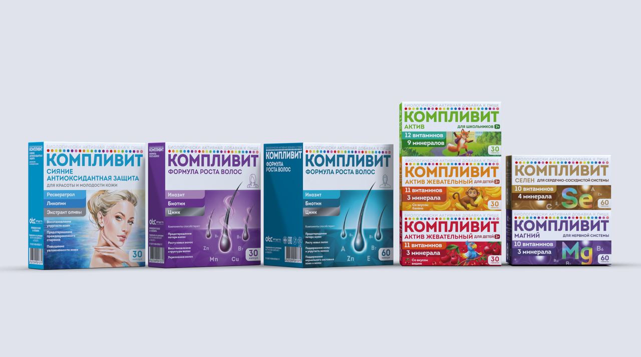 Бренд «Компливит» существует на российском рынке с 1988 года. На сегодняшний день в его линейку входят витамины и витаминно-минеральные комплексы, закрывающие все основные потребности потребителя: общеукрепляющие, детские, для женской красоты и здоровья, энерготоники, специализированные и другие. «Компливит» — лидер рынка ВМК в упаковках.