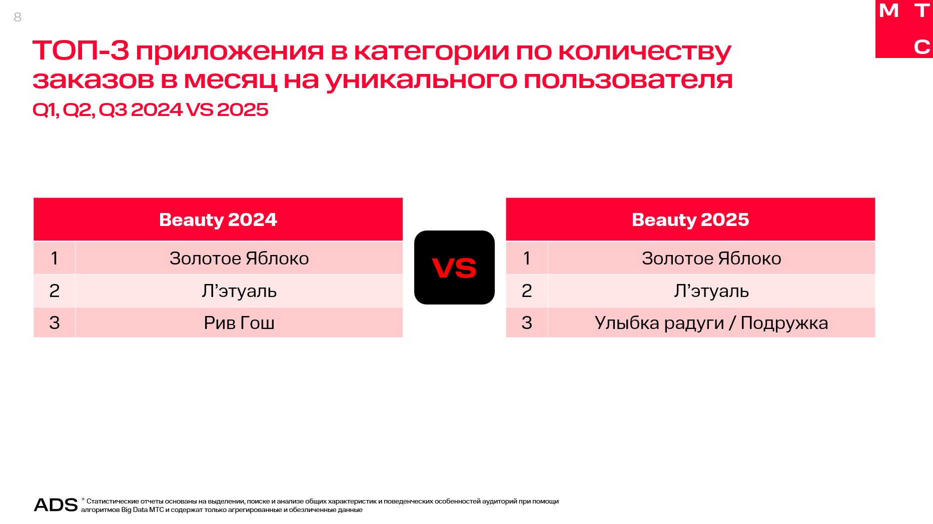 высокий показатель в beauty-сегменте — у ядра аудитории «Золотого Яблока»