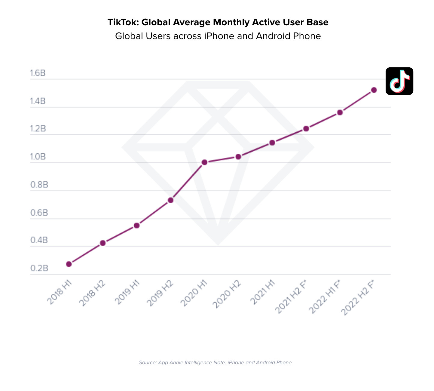 - Число активных пользователей в месяц TikTok превысит 1,5 миллиарда к 2022 году — это почти на 2 года быстрее, чем у WhatsApp