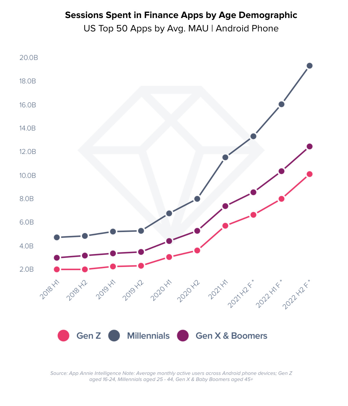 - Финансовая вовлеченность поколения Z с использованием мобильных устройств вырастет до 160%.