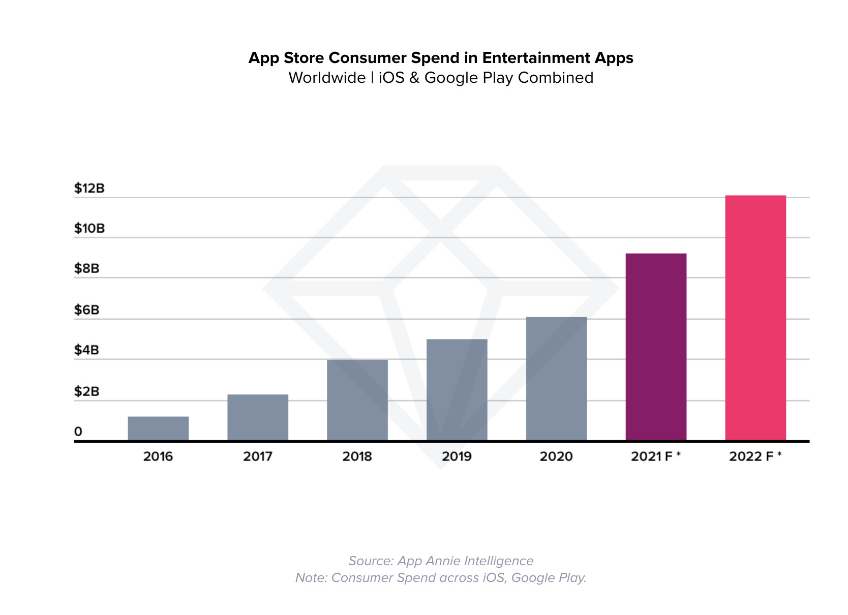 - Подписки на видео-стриминг обеспечат существенный рост расходов пользователей в категории развлекательных приложений — до $12 млрд.